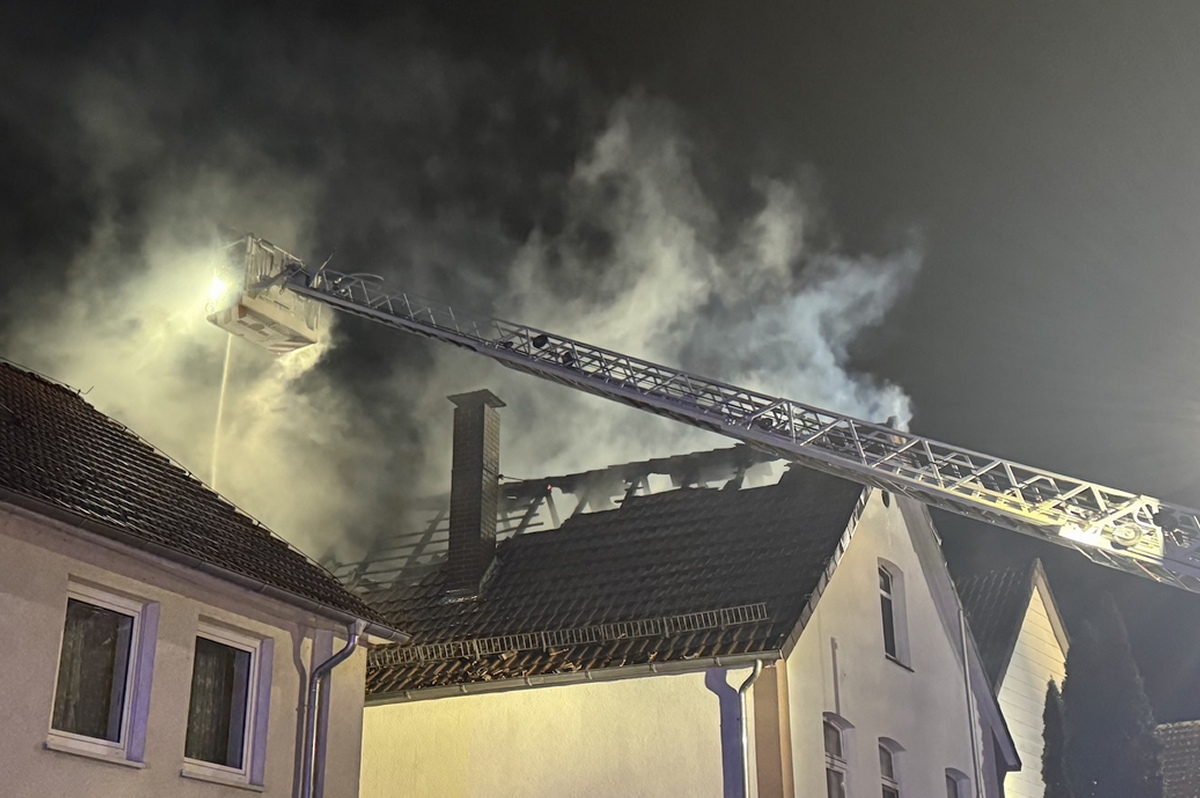 Ottbergen (TKu). Ein verherender Dachstuhlbrand hat in der Silvester- und Neujahrsnacht 2026 für einen Großeinsatz der Feuerwehr in Höxter-Ottbergen gesorgt. Gegen 0.15 Uhr wurden die Einsatzkräfte zu einem Wohnhaus an der Höxterschen Straße, Ecke Nethestraße, alarmiert. Beim Eintreffen der ersten Feuerwehrkräfte stand der Dachstuhl des Einfamilienhauses bereits in Vollbrand. Feuer schlug durch die Dachhaut und die gesamte Straße war stark verraucht, wie Zeugen berichten. Der Dachstuhl brannte vollständig aus. Nach Angaben der Polizei handelte es sich um den größten Brand im Kreis Höxter in dieser Neujahrsnacht neben zahlreichen kleineren Hecken- oder Mülltonnenbränden. Dank des schnellen und professionellen Eingreifens der Feuerwehr konnte ein Übergreifen der Flammen auf zwei unmittelbar benachbarte Häuser verhindert werden. Verletzt wurde durch den Großbrand niemand, die Bewohner des Hauses konnten das Gebäude noch rechtzeitig verlassen.
