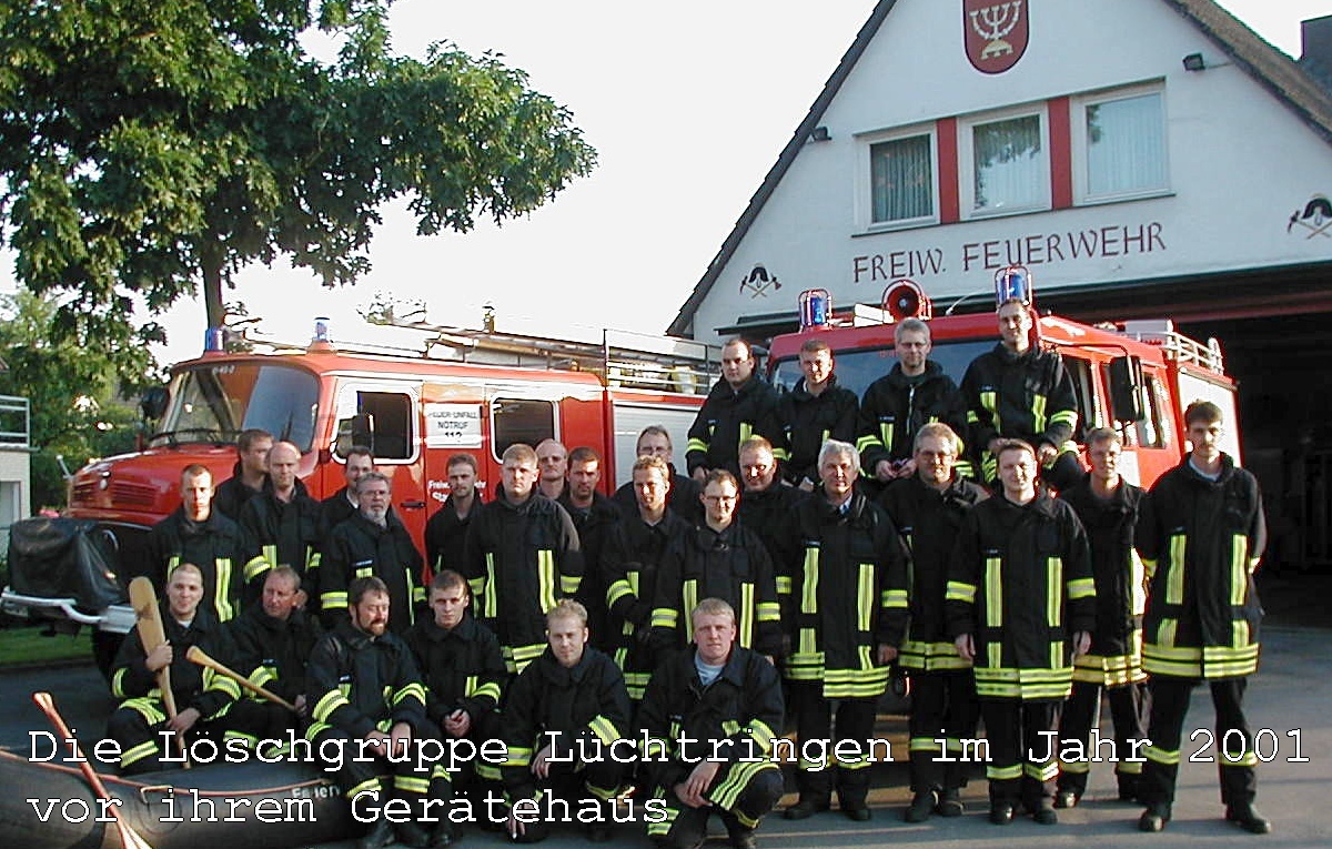 Das erste Spritzenhaus der Feuerwehr Lüchtringen befand sich gegenüber der Kirche und diente über rund 150 Jahre nicht nur zur Unterbringung der Löschgeräte, sondern zeitweise auch als Dorfgefängnis. Mit den Jahren wurde das Gebäude zunehmend baufällig. Aufgrund der Kriegs- und Nachkriegszeit verzögerte sich ein Neubau erheblich. Erst nach der Währungsreform 1948 konnten Planungen aufgenommen werden, die schließlich in den 1950er-Jahren konkretisiert wurden. 1964 konnte das neue Feuerwehrgerätehaus an der Allenbergstraße bezogen werden; das erste Spritzenhaus wurde 1967 abgerissen. Das vor 62 Jahren errichtete Gerätehaus wurde über Jahrzehnte hinweg genutzt und ständig durch Umbauten und Eigenleistungen an die Bedürfnisse der Feuerwehr angepasst, unter anderem durch Modernisierungen der Fahrzeughalle und einen Anbau im Jahr 2005. Trotz dieser Maßnahmen entsprach das Gebäude zuletzt nicht mehr den heutigen Anforderungen. Das Feuerwehrgerätehaus wurde daher zusammen mit der alten Schule im Jahr 2025 abgerissen, um Platz für den Neubau, der nun entsteht, zu schaffen.