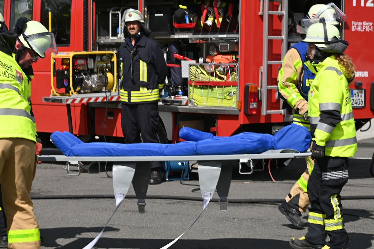 Bödexen (TKu). Zahlreiche Besucher nutzten am Sonntag die Gelegenheit, einen Blick hinter die Kulissen der Löschgruppe Bödexen der Freiwilligen Feuerwehr der Stadt Höxter zu werfen. Beim „Tag des offenen Tores“ erwartete die Gäste ein abwechslungsreiches Programm für die ganze Familie mit Informationen, Vorführungen und viel Unterhaltung. Für die passende musikalische Begleitung sorgten der Spielmannszug Bödexen sowie die Blaskapelle Bödexen, die die Veranstaltung bereits zu Beginn stimmungsvoll umrahmten. Bei Kaffee und Kuchen konnten sich die Besucher stärken und gleichzeitig das Geschehen auf dem Gelände verfolgen.