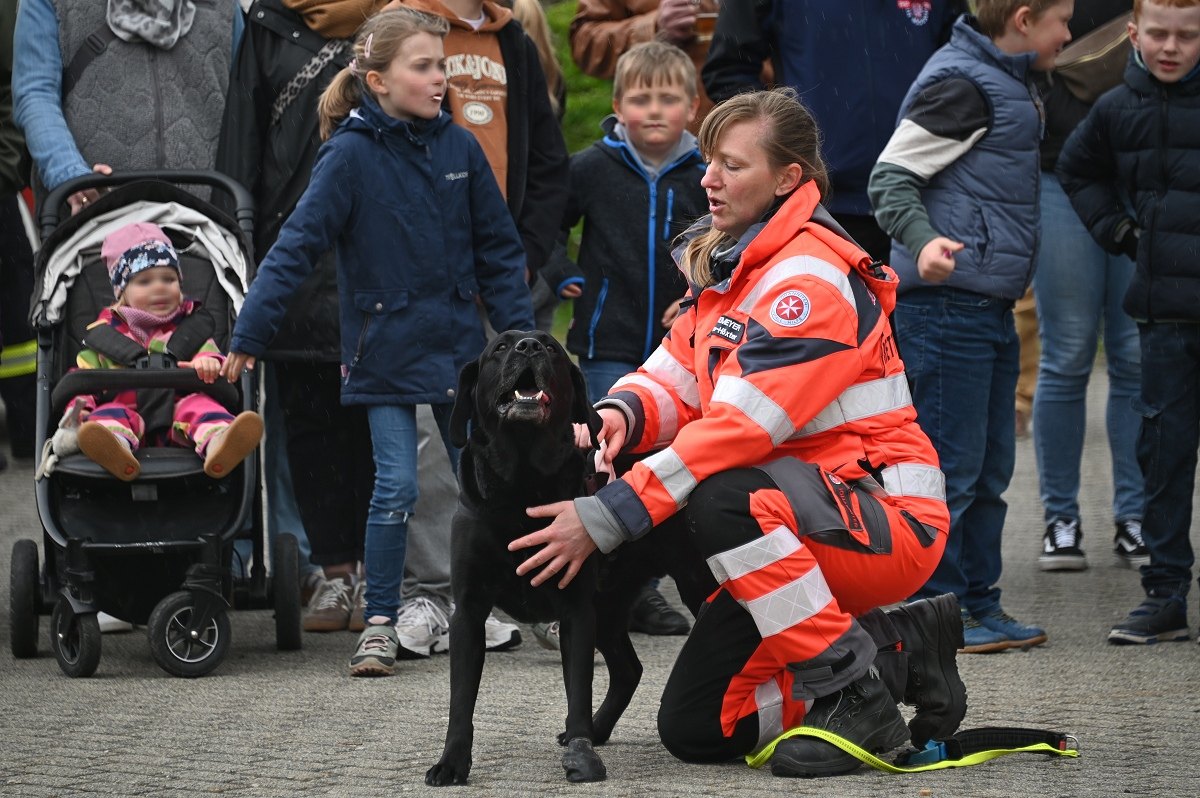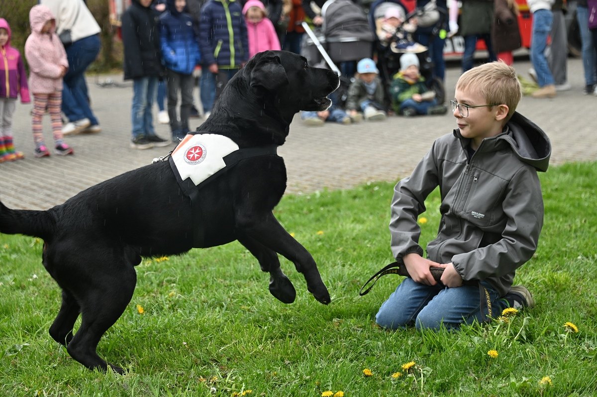 Ein besonderer Anziehungspunkt waren die Vorführungen und eine kleine Fahrzeugschau. Neben den Einsatzfahrzeugen der örtlichen Kräfte aus Bödexen und Fürstenau präsentierte der Löschzug Höxter unter anderem seine Drehleiter sowie seinen Rüstwagen. Auch der Einsatzleitwagen 2 des Kreises Höxter war vor Ort und stellte seine neue Drohnenstaffel vor, die bei Einsätzen zunehmend an Bedeutung gewinnt. Ergänzt wurde das Programm durch die Rettungshundestaffel Höxter-Lippe, die mit einer Vorführung eindrucksvoll ihr Können demonstrierte. Unter der Federführung von Hundeführerin Jutta Sprenger gewährte die Hundestaffel Einblicke in die Ausbildung der Rettungshunde und demonstrierte das Anzeigen von Personen mit dem sogenannten „Verbellen“, wie es der Fall ist, wenn eine Person beispielsweise im Wald durch den Hund aufgefunden wird.