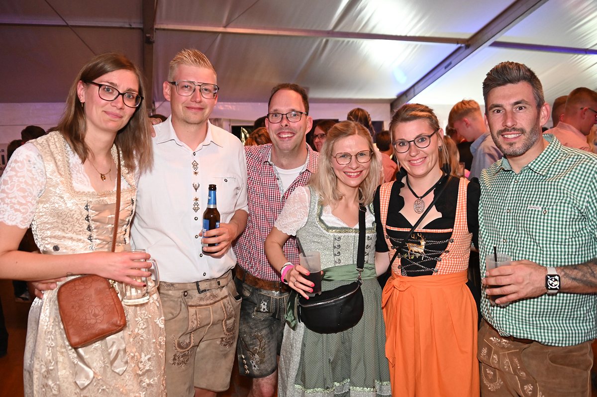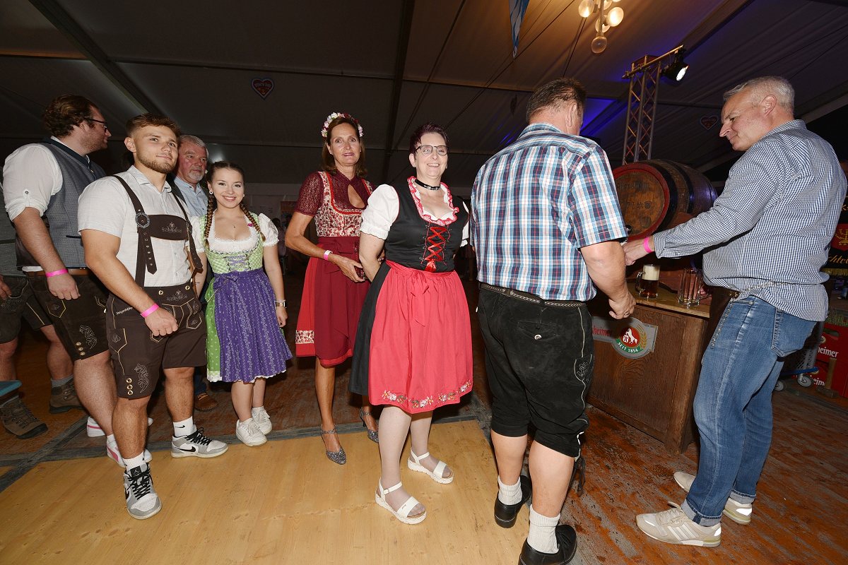 Lüchtringen (TKu). So war das Oktoberfest Lüchtringen: Zünftig, laut und voller Lebensfreude feierte Lüchtringen am vergangenen Wochenende sein Oktoberfest, die „Lüchtringer Wies’n“ und verwandelte das große Festzelt auf dem Festplatz im Lambertweg in ein Meer aus Dirndl und Lederhosen. Mehr als 1500 Besucherinnen und Besucher ließen sich die größte Oktoberfest-Party der Region nicht entgehen und sie wurden nicht enttäuscht. Mit zwei kräftigen Hammerschlägen zapfte Marcus Busse von der Brauerei Allersheim am Samstagabend das erste Fass an und eröffnete gemeinsam mit Festwirt Stefan Friedrich, dem Vorsitzenden der Blaskapelle Lüchtringen, Christoph Missing, sowie Dirigent Martin Heinemeyer das Fest. Damit war der Startschuss für zwei Tage voller Musik und Feierlaune gefallen. Den Auftakt gestaltete die gastgebende Blaskapelle Lüchtringen, ehe die „FrankenKracher“ mit ihrem Mix aus bayerischer Blasmusik und modernen Partyhits das Zelt zum Beben brachten.