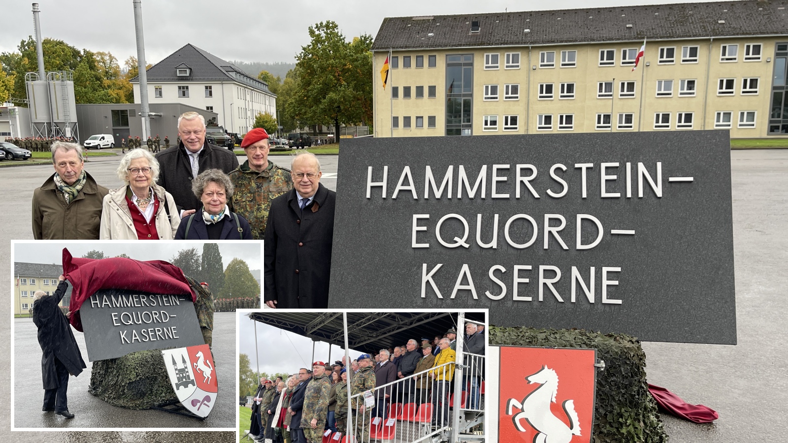 Höxter (TKu). Moderne Zeiten haben ab sofort für die Soldatinnen und Soldaten am Standort Höxter begonnen. Mit einem feierlichen Appell am Mittwochnachmittag wurde die bisherige General-Weber-Kaserne offiziell in Hammerstein-Equord-Kaserne umbenannt. Damit trägt die Liegenschaft der Bundeswehr nun den Namen eines Mannes, der für Haltung, Gewissen und Widerstand gegen den Nationalsozialismus steht: Generaloberst Kurt Freiherr von Hammerstein-Equord. Der Festakt, zu dem zahlreiche Gäste aus Politik, Verwaltung, Wirtschaft, Kirche und Militär erschienen waren, markierte zugleich einen doppelten Neuanfang. Denn mit der Umstrukturierung der ABC-Abwehrtruppe wurde in Höxter nicht nur der Name, sondern auch die militärische Organisation erneuert. Der Umbenennungsappell folgte einer traditionellen militärischen Zeremonie: Nach der Meldung und dem Abschreiten der Front durch den neuen Regimentskommandeur Oberst Michael Lutz erklangen Marschmusik und die Nationalhymne, dargeboten vom Heeresmusikkorps Kassel. Anschließend folgten Ansprachen und die Enthüllung der neuen Namensplakette, bevor die Formation mit dem Kommando „Nebel Ahoi!“ und dem Ausmarsch ihren feierlichen Abschluss fand. Trotz des regnerischen Wetters war die Stimmung unter den Anwesenden von Stolz und Erleichterung geprägt. Nach jahrzehntelanger Diskussion um den früheren Namensgeber General Weber und die Bewertung seiner Rolle in der NS-Zeit ist nun eine Entscheidung gefallen, die weithin Zustimmung findet.