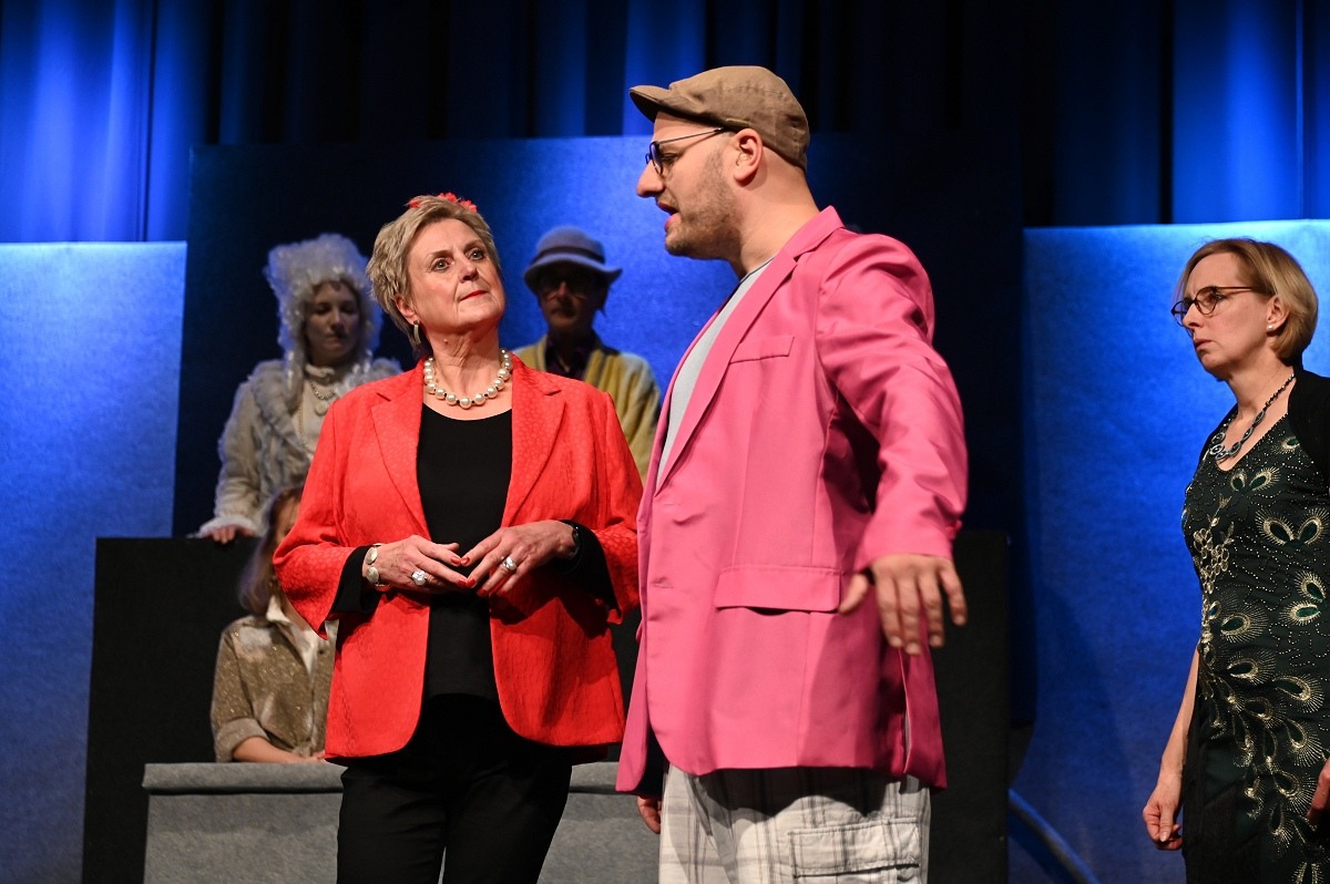Ottbergen (TKu). Das Theater-Ensemble ThimKu, Theater im Kuhstall, hat am vergangenen Wochenende mit seiner neuen Komödie „Burghotel Schlosshof – Kredit wird nicht gegeben“ von Evelyn Köster erfolgreich abgeliefert. Am 8. und 9. November feierte das Stück im voll besetzten Kuhstall in Ottbergen seine Premiere mit zwei Aufführungen. Das Publikum zeigte sich begeistert von der turbulenten Handlung und dem, mit viel Freude agierenden, Ensemble, das an beiden Abenden mit viel Applaus belohnt wurde. Im Mittelpunkt der Aufführung steht das Burghotel Schlosshof, ein in die Jahre gekommener Hotelkomplex, der kurz vor dem Aus steht. Hoteldirektor Fröhlitsch, seine Mitarbeiterinnen Pitrella Partinowa und Hannelore Prügelhausen sowie zwei liebreizende Geister setzen große Hoffnungen in eine illustre Gästeschar. Doch unter ihnen soll sich auch ein Spion der Finanz- und Bilanz AG befinden. Mit einer Mischung aus Humor, Spannung und skurrilen Eigenheiten nimmt das Ensemble das Publikum mit in eine Welt voller Rätsel, Notizbücher und schräger Überraschungen. Besonders war dieser Premierenstart auch für Maren Schlebusch, Gründungsmitglied des ThimKu e. V., die mit dieser Inszenierung ihr Regiedebüt gab.