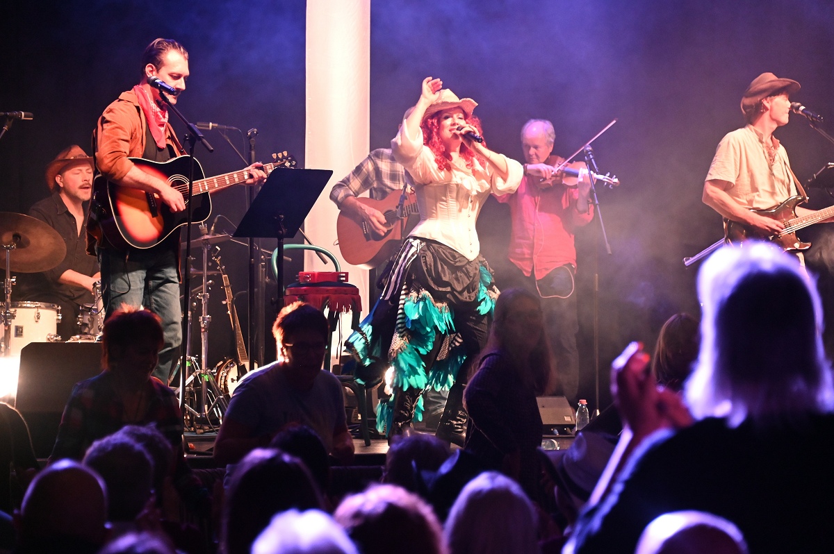 Beverungen (TKu). Mit authentischem Country-Sound hat „Nashville Live“ am vergangenen Donnerstagabend 650 Besucherinnen und Besucher in der Beverunger Stadthalle in seinen Bann gezogen. Die von der Kulturgemeinschaft Beverungen organisierte Musikshow war eine Hommage an die Musikmetropole Nashville, dort, wo Country, Folk und Americana ihre Wurzeln haben. Die Besucherinnen und Besucher, zumeist alle echte Country-Fans, haben nicht nur mitgesungen und mitgeklatscht, sondern auch selbst „die Zügel in die Hand genommen“ und am Rande der Sitzplätze zur Musik der Country-Band mehrere Linedances aufgeführt, und zwar direkt vor und seitlich der Bühne. Country-Klassiker wie „Ring of Fire“, „Jolene“ oder „On the Road Again“ lösten Begeisterungswellen aus, während die Musikerinnen und Musiker eine Atmosphäre schufen, die an die Abende im Honky-Tonk-District von Nashville erinnerte. „Eine derartige Country-Show hatten wir zum ersten Mal im Programm“, meinte Elke Reede von der Kulturgemeinschaft Beverungen.