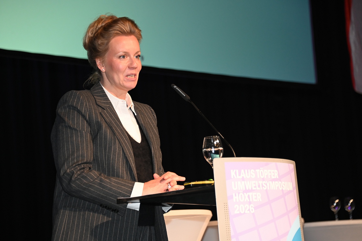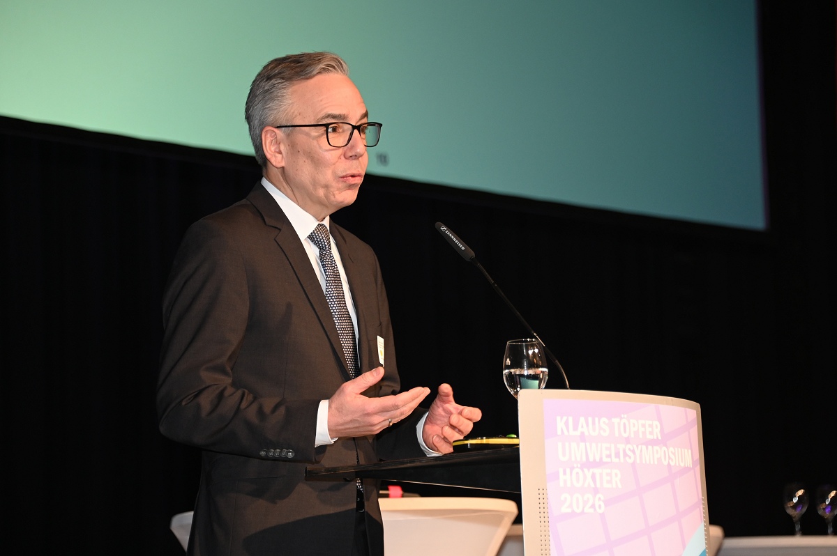 Höxter (TKu). Mit großer Resonanz ist am 9. Februar 2026 das erste Klaus-Töpfer-Umweltsymposium in der Residenz-Stadthalle in Höxter gestartet. Mehr als 250 Teilnehmende aus Wissenschaft, Wirtschaft, Verwaltung und Politik sowie zahlreiche interessierte Bürgerinnen und Bürger nutzten die zweitägige Veranstaltung, um sich intensiv über aktuelle und zukünftige Herausforderungen im Umwelt- und Nachhaltigkeitsbereich auszutauschen. Die Eröffnung des Symposiums übernahm die nordrhein-westfälische Wissenschaftsministerin Ina Brandes, die als Schirmherrin die Bedeutung von Wissenschaft und Forschung für nachhaltige Lösungsansätze unterstrich. Zuvor hatten die Kreisdirektorin des Kreises Höxter, Manuela Kupsch, und der Bürgermeister der Stadt Höxter, Daniel Hartmann, die Gäste willkommen geheißen. Zu den Anwesenden zählten neben Landes- und Europapolitikern auch die Regierungspräsidentin des Regierungsbezirks Detmold, Anna Katharina Bölling, sowie Vertreterinnen und Vertreter weiterer Hochschulen aus Nordrhein-Westfalen und darüber hinaus.
