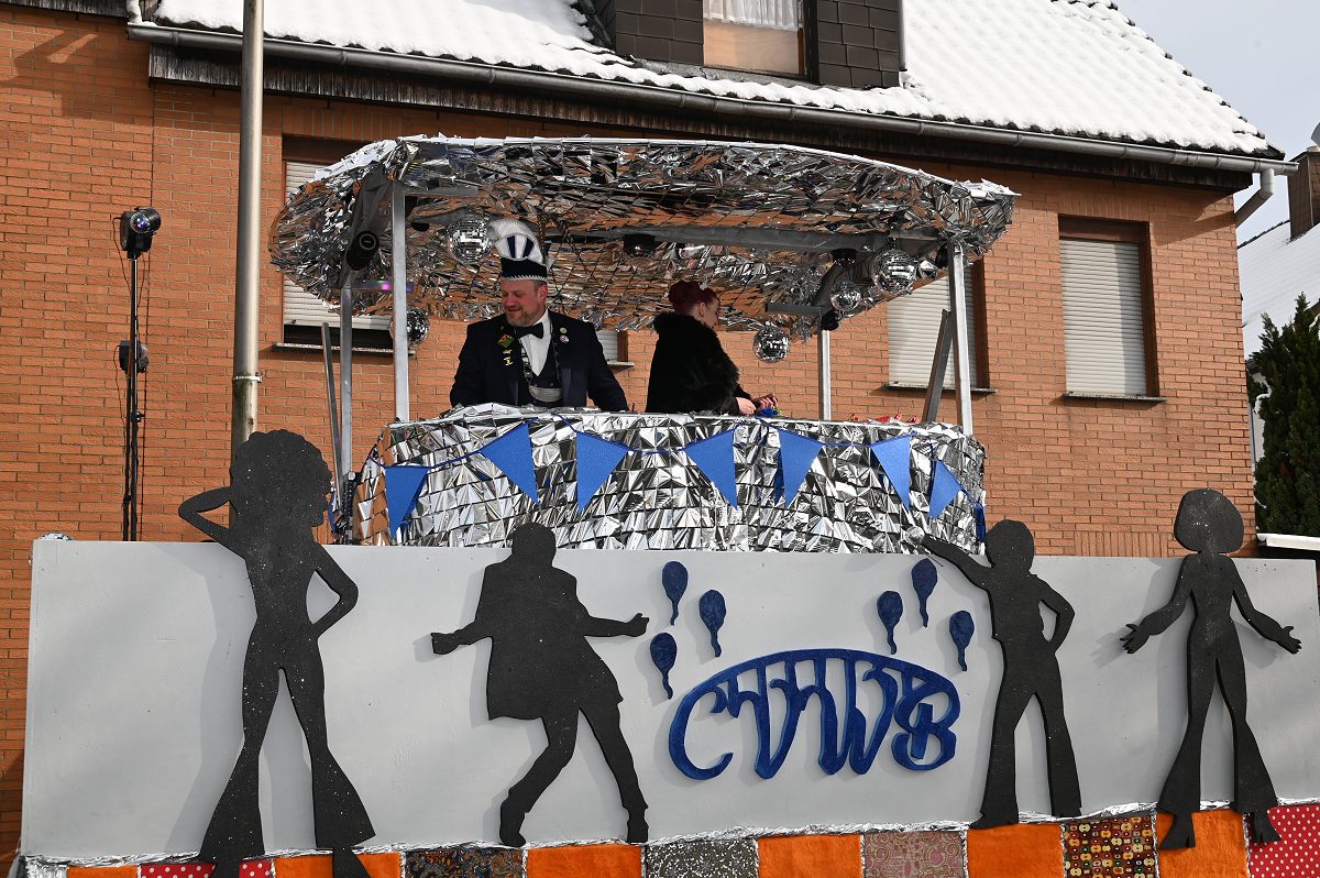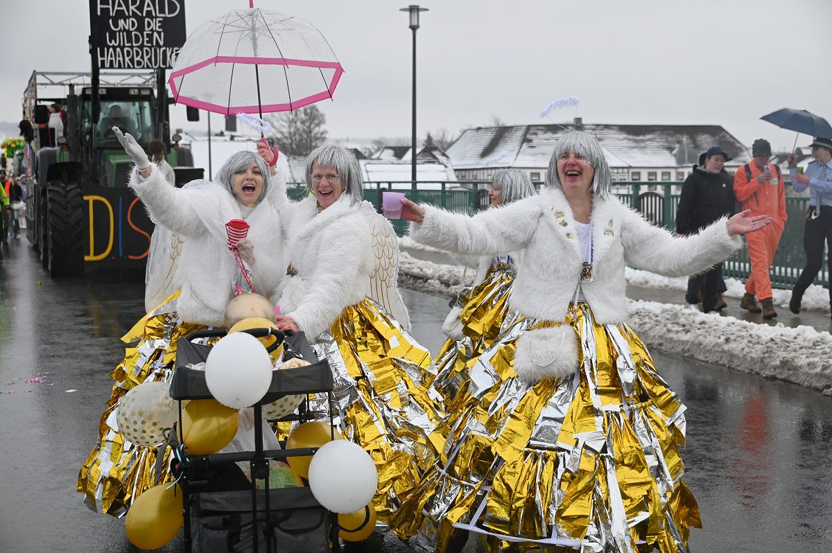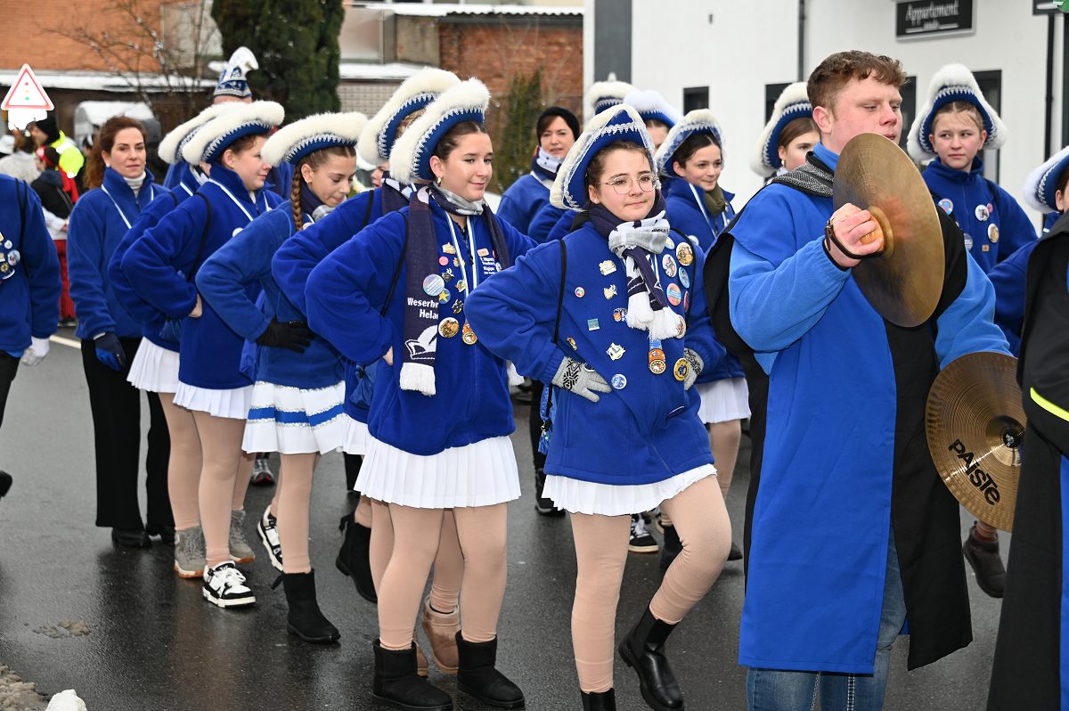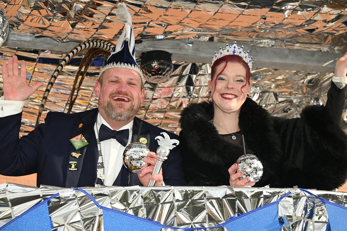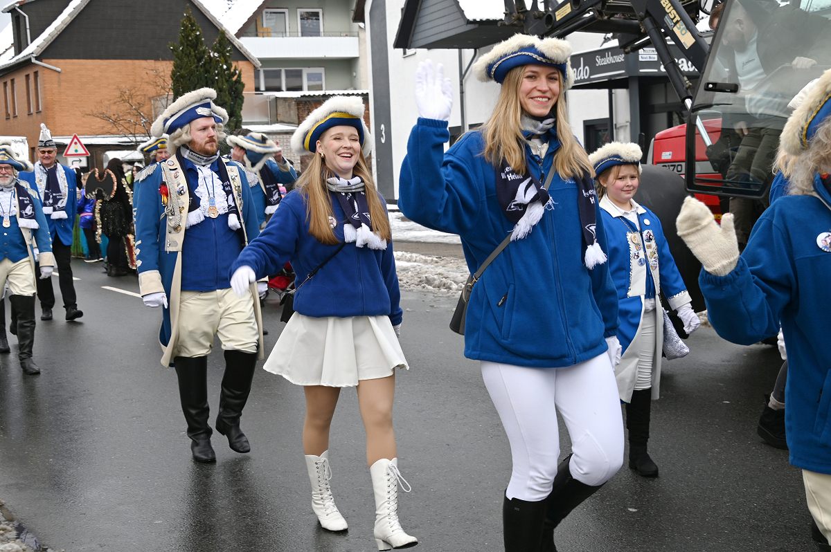 Tausende Jecken säumten die Straßenränder, ausgerüstet mit Beuteln und guter Laune, stets in der Hoffnung auf Kamelle, Konfetti und kleine Überraschungen. Für eine besondere, fast schon märchenhafte Note sorgte das Wetter: Mitten im Februar fielen zwischendurch tatsächlich ein paar Schneeflocken. Die Prinzenpaare hatten mit dem Rosenmontagsumzug auch ihren letzten großen Auftritt. Prinz Florian (Kastens), „der balearisch Regierende“, und Prinzessin Carena (Zarnitz), „die ewig Marschierende“, verabschiedeten sich gemeinsam mit dem Kinderprinzenpaar Till (Marx), „der fröhlich Kreative“, und Prinzessin Johanna (Kleinschmidt), „die glitzernd Aktive“, vom närrischen Volk. Insgesamt nahmen über 50 Wagen, Fußgruppen und Musikzüge teil: von Spielmannszügen aus der Region über Garden, Elferräte und Fantasiegruppen bis hin zu Sicherheitswagen und dem Deutsches Rotes Kreuz, das für einen sicheren Ablauf sorgte. Nach dem Umzug wurde in und an der Stadthalle Beverungen ausgelassen weitergefeiert.