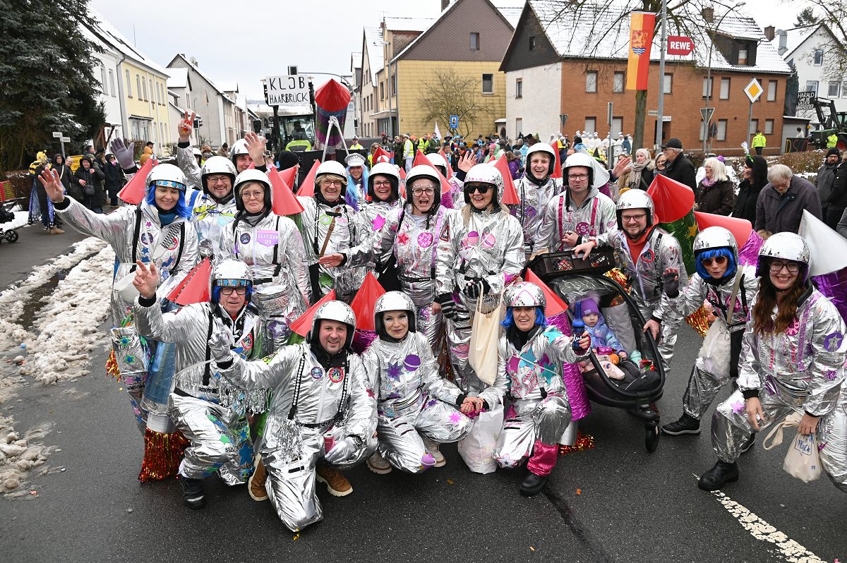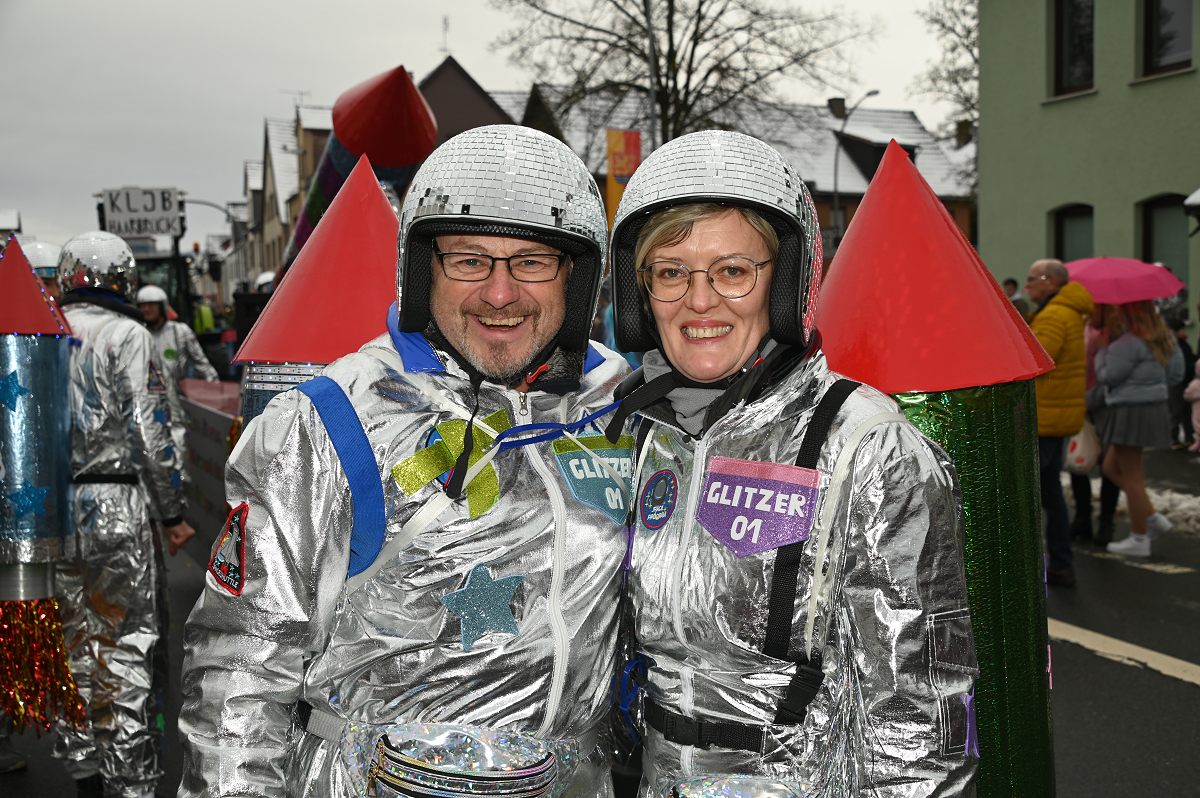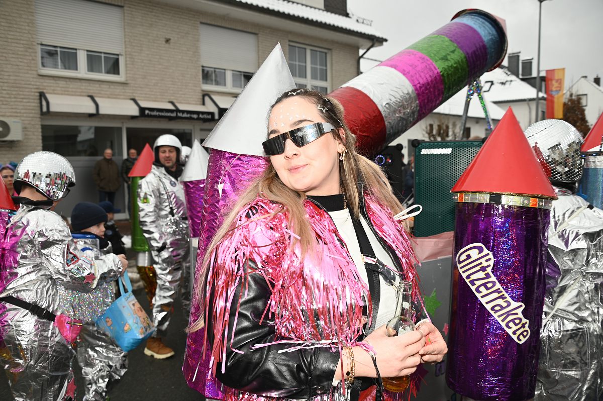 Beverungen/Lauenförde (TKu). Ganz im Zeichen des Mottos „Der CVWB glitzert grenzenlos – im Dreiländereck ist richtig was los!“ verwandelten sich Lauenförde und Beverungen am Rosenmontag in ein funkelndes Karnevalsmeer. Der große Jubiläumsumzug des Carnevalsverein Weserbrücke e.V. (CVWB) markierte den Höhepunkt der Session und zugleich das 50-jährige Bestehen des Vereins. Hunderte Meter lang zog sich der farbenprächtige Lindwurm von der Würgasser Straße durch Lauenförde, weiter über die Weserbrücke bis zur Stadthalle Beverungen. Angeführt vom Prinzenwagen des CVWB mit Prinz Florian (Kastens), „der balearisch Regierende“, und Prinzessin Carena (Zarnitz), „die ewig Marschierende", präsentierten sich die Umzugsteilnehmenden fantasievoll und detailverliebt: Raketen, glitzernde Phantasievögel, Schneekristalle, Cowboys, Hexen, Discogruppen und sogar festlich geschmückte Weihnachtsbäume sorgten für staunende Gesichter.