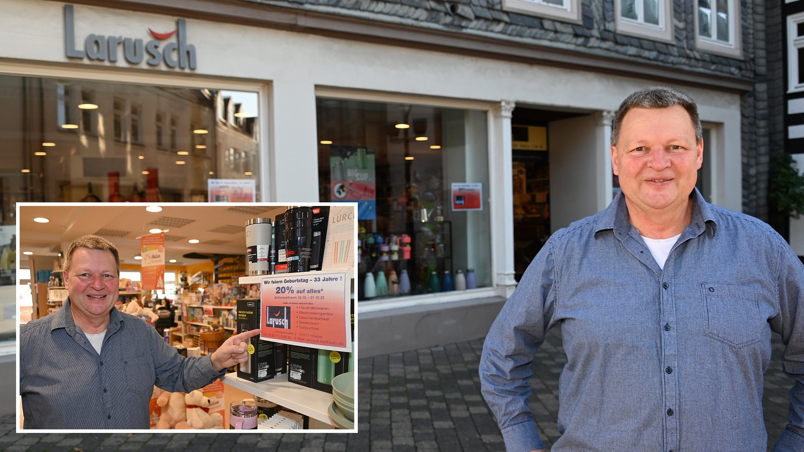 Höxter. Das Fachgeschäft Larusch in Höxter feiert in diesem Monat sein 33-jähriges Bestehen. Aus diesem besonderen Anlass erhalten Kunden zwischen dem 18. und 31. Oktober 2025 20 Prozent Rabatt auf das gesamte Sortiment. Seit seiner Gründung im Jahr 1992 hat sich Larusch als verlässlicher Ansprechpartner für Haushaltswaren, Spielwaren und Geschenke etabliert und ist heute ein fester Bestandteil der Höxteraner Geschäftswelt.