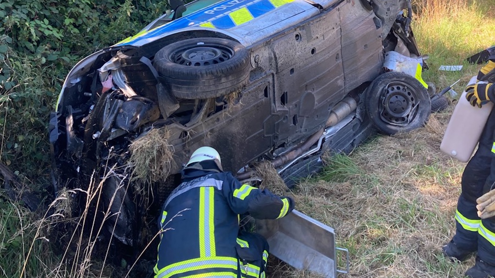Nach bisherigen Erkenntnissen kam der Wagen zwischen Bosseborn und Brakel aus bislang ungeklärter Ursache von der Fahrbahn ab. Der Streifenwagen überschlug sich mehrfach und kam schließlich im Straßengraben auf der rechten Fahrzeugseite zum Stillstand.