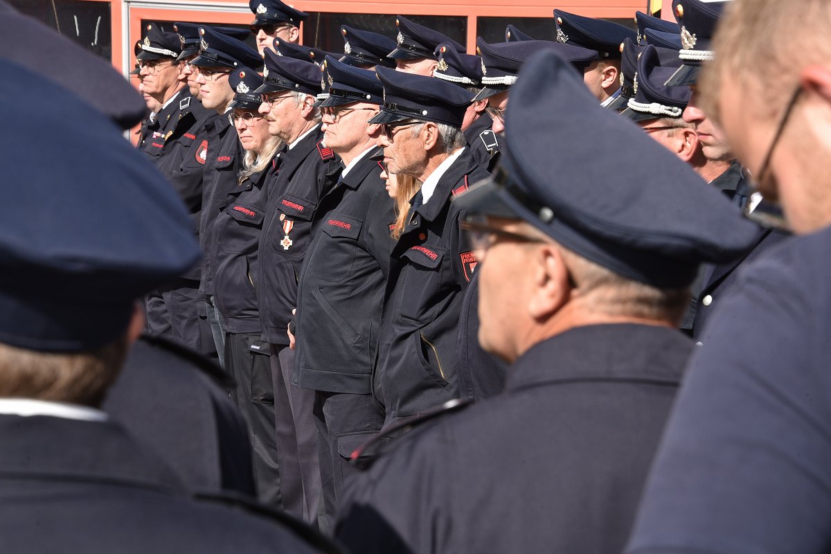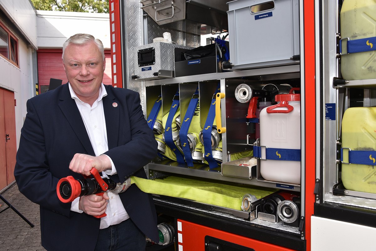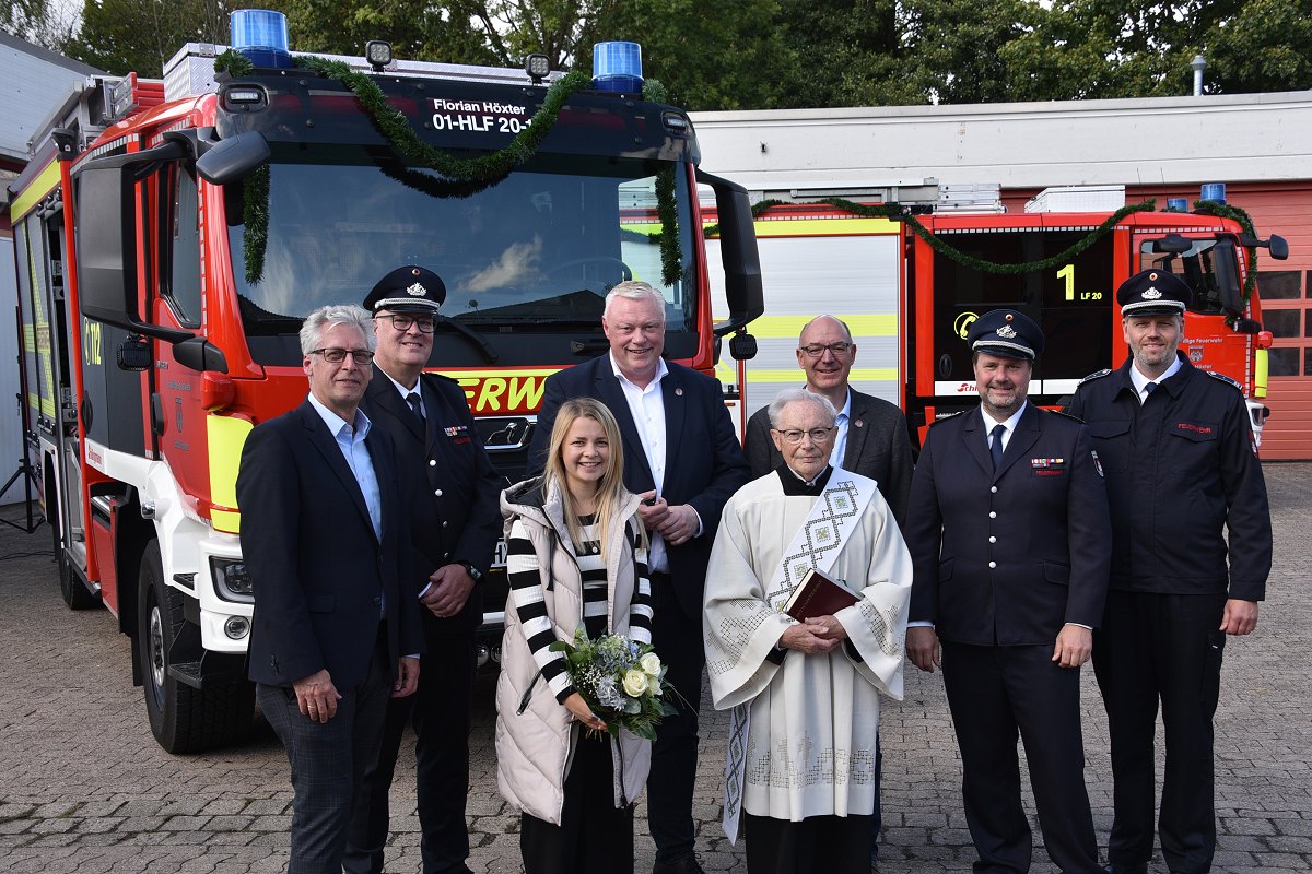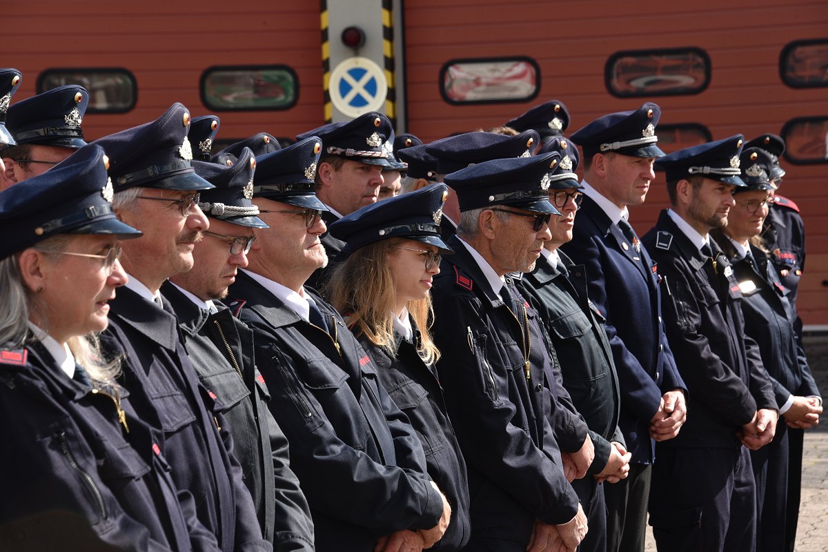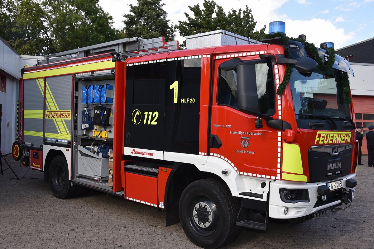 In seiner Ansprache zeigte sich Bürgermeister Hartmann begeistert: „Wenn zwei neue, blitzblanke Feuerwehrfahrzeuge auf den Hof rollen, dann schlägt nicht nur das Herz der Feuerwehr höher, sondern auch meins.“ Er erinnerte an die Ankunft der Fahrzeuge Ende August, die mit einer Wasserfontäne und Spalier der Kameraden wie ein „Ehrenempfang für zwei Rockstars“ inszeniert worden sei. Die beiden neuen Fahrzeuge ersetzen ein Tanklöschfahrzeug aus dem Jahr 1995 und ein Hilfeleistungslöschfahrzeug von 1999. „28 und 26 Jahre haben die beiden auf dem Buckel. Sie haben zuverlässig ihren Dienst getan, doch irgendwann ist der Punkt erreicht, an dem man Danke sagt und sie in den wohlverdienten Ruhestand schickt“, so Hartmann. Die Anschaffung sei eine große Investition für die Stadt: Rund 961.000 Euro kosteten Fahrgestell und Aufbau, weitere 165.000 Euro wurden für die umfangreiche Beladung aufgewendet. Besonders dankte Hartmann der Firma Fricke Spedition, die die Beladung kostenlos über anderthalb Jahre einlagerte. Insgesamt flossen damit über 1,1 Millionen Euro in die Sicherheit der Bürgerinnen und Bürger von Höxter. Jeder Cent sei gut investiert, betonte der Bürgermeister.