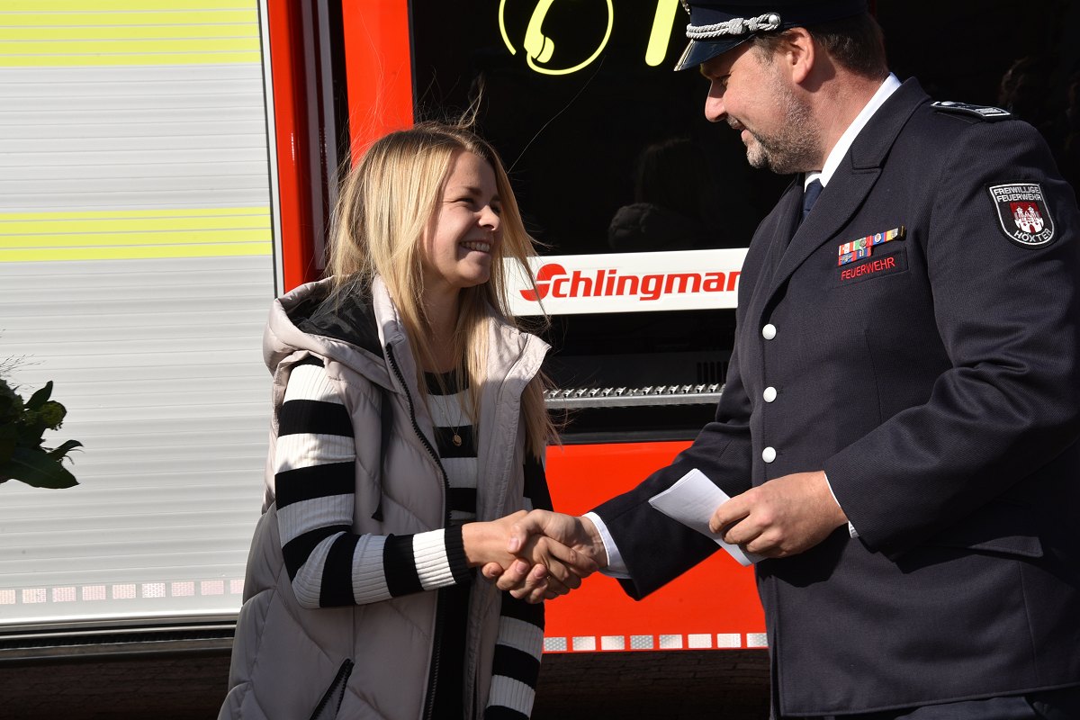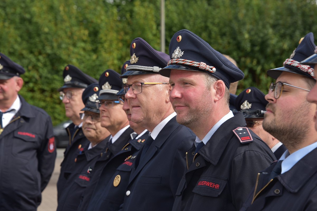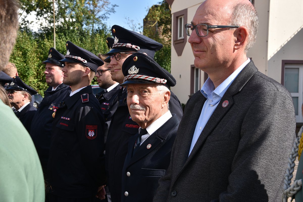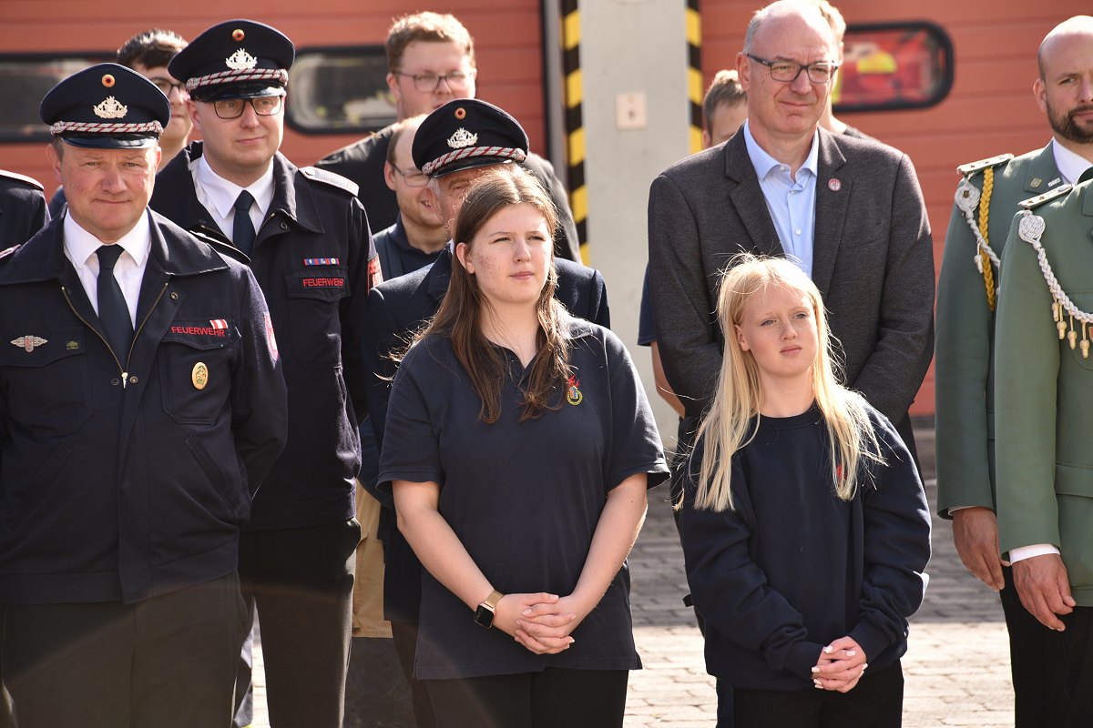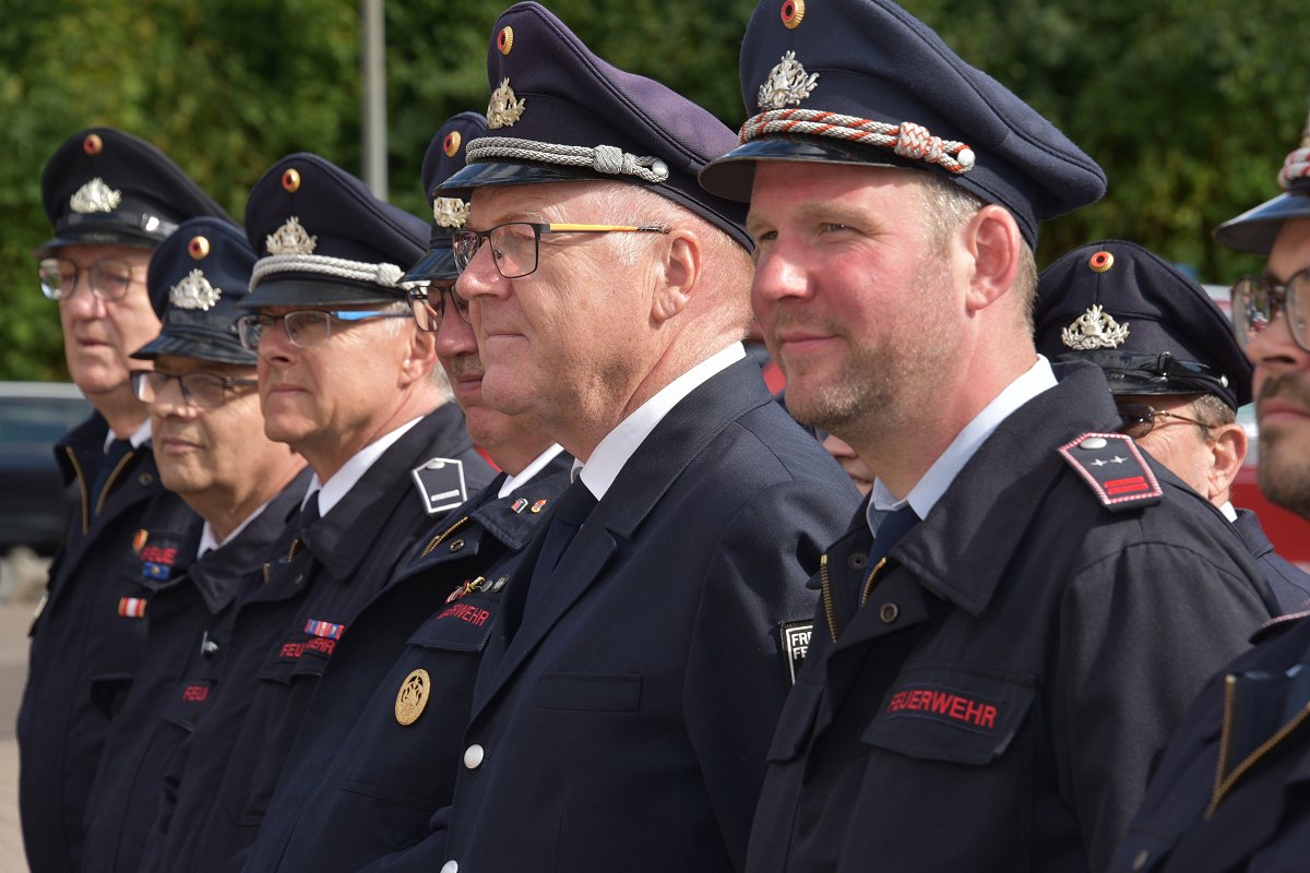 In seiner Ansprache zeigte sich Bürgermeister Hartmann begeistert: „Wenn zwei neue, blitzblanke Feuerwehrfahrzeuge auf den Hof rollen, dann schlägt nicht nur das Herz der Feuerwehr höher, sondern auch meins.“ Er erinnerte an die Ankunft der Fahrzeuge Ende August, die mit einer Wasserfontäne und Spalier der Kameraden wie ein „Ehrenempfang für zwei Rockstars“ inszeniert worden sei. Die beiden neuen Fahrzeuge ersetzen ein Tanklöschfahrzeug aus dem Jahr 1995 und ein Hilfeleistungslöschfahrzeug von 1999. „28 und 26 Jahre haben die beiden auf dem Buckel. Sie haben zuverlässig ihren Dienst getan, doch irgendwann ist der Punkt erreicht, an dem man Danke sagt und sie in den wohlverdienten Ruhestand schickt“, so Hartmann. Die Anschaffung sei eine große Investition für die Stadt: Rund 961.000 Euro kosteten Fahrgestell und Aufbau, weitere 165.000 Euro wurden für die umfangreiche Beladung aufgewendet. Besonders dankte Hartmann der Firma Fricke Spedition, die die Beladung kostenlos über anderthalb Jahre einlagerte. Insgesamt flossen damit über 1,1 Millionen Euro in die Sicherheit der Bürgerinnen und Bürger von Höxter. Jeder Cent sei gut investiert, betonte der Bürgermeister.