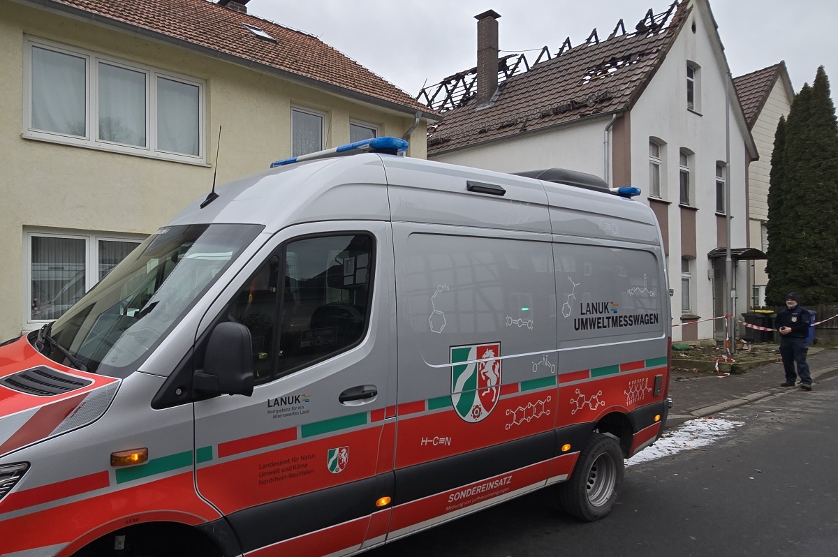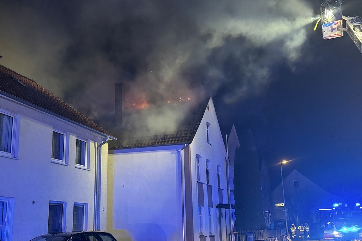 Ottbergen (TKu). Ein verherender Dachstuhlbrand hat in der Silvester- und Neujahrsnacht 2026 für einen Großeinsatz der Feuerwehr in Höxter-Ottbergen gesorgt. Gegen 0.15 Uhr wurden die Einsatzkräfte zu einem Wohnhaus an der Höxterschen Straße, Ecke Nethestraße, alarmiert. Beim Eintreffen der ersten Feuerwehrkräfte stand der Dachstuhl des Einfamilienhauses bereits in Vollbrand. Feuer schlug durch die Dachhaut und die gesamte Straße war stark verraucht, wie Zeugen berichten. Der Dachstuhl brannte vollständig aus. Nach Angaben der Polizei handelte es sich um den größten Brand im Kreis Höxter in dieser Neujahrsnacht neben zahlreichen kleineren Hecken- oder Mülltonnenbränden. Dank des schnellen und professionellen Eingreifens der Feuerwehr konnte ein Übergreifen der Flammen auf zwei unmittelbar benachbarte Häuser verhindert werden. Verletzt wurde durch den Großbrand niemand, die Bewohner des Hauses konnten das Gebäude noch rechtzeitig verlassen.