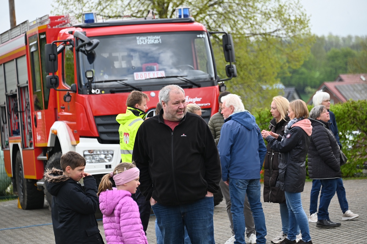 Bödexen (TKu). Zahlreiche Besucher nutzten am Sonntag die Gelegenheit, einen Blick hinter die Kulissen der Löschgruppe Bödexen der Freiwilligen Feuerwehr der Stadt Höxter zu werfen. Beim „Tag des offenen Tores“ erwartete die Gäste ein abwechslungsreiches Programm für die ganze Familie mit Informationen, Vorführungen und viel Unterhaltung. Für die passende musikalische Begleitung sorgten der Spielmannszug Bödexen sowie die Blaskapelle Bödexen, die die Veranstaltung bereits zu Beginn stimmungsvoll umrahmten. Bei Kaffee und Kuchen konnten sich die Besucher stärken und gleichzeitig das Geschehen auf dem Gelände verfolgen.