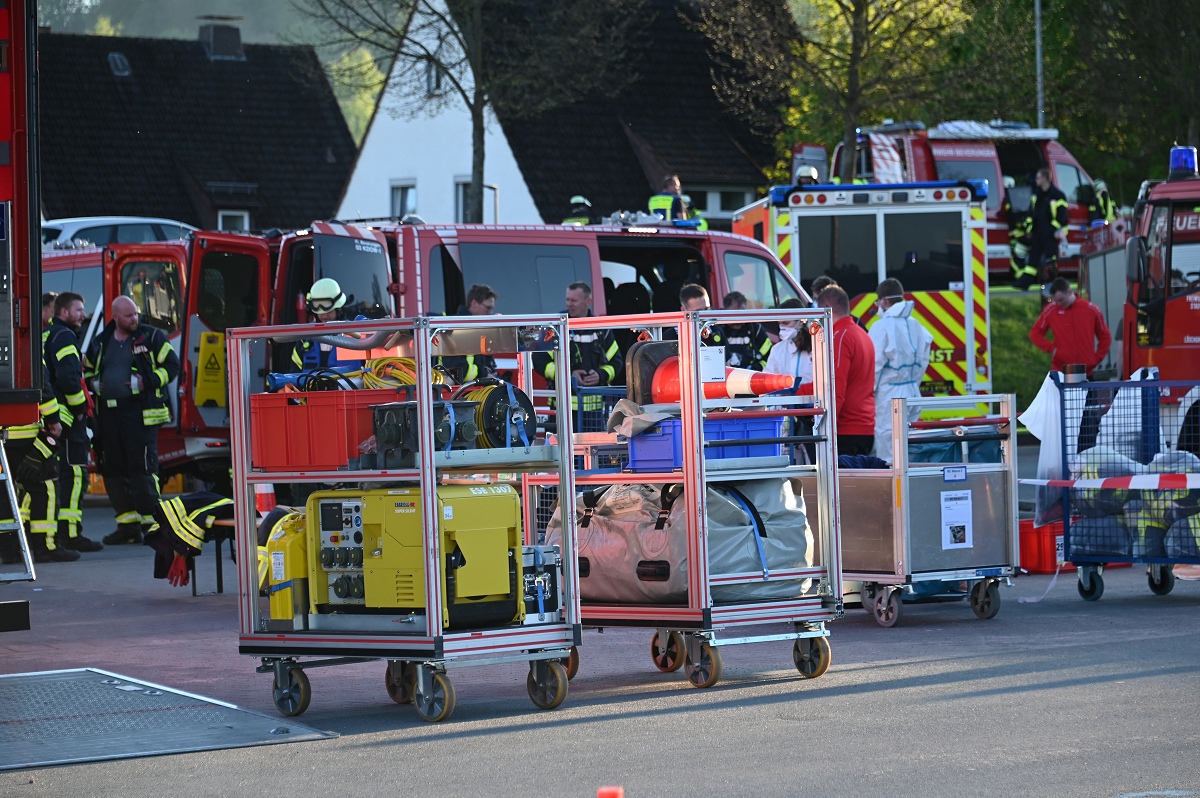 Verletzt wurde niemand. Zum Zeitpunkt des Brandausbruchs konnten sich alle Personen im betroffenen Gebäude ins Freie retten, sodass keine Rettungsmaßnahmen erforderlich waren. Die Rauchentwicklung war erheblich: Eine dichte Rauchsäule zog über das Stadtgebiet, der Brandgeruch war weithin wahrnehmbar. Warn-Apps wie NINA informierten die Bevölkerung und riefen dazu auf, Fenster und Türen geschlossen zu halten. Rund 120 Einsatzkräfte waren zeitweise vor Ort. Neben zahlreichen Löschmaßnahmen kam auch eine Drohne der Kreisfeuerwehr Höxter zum Einsatz, um sich aus der Luft ein Bild der Lage zu verschaffen. Gegen 20:15 Uhr wurde zusätzlich ein Bagger eingesetzt, um die stark beschädigten Anbauten kontrolliert abzureißen. Dadurch konnten Glutnester freigelegt und gezielt abgelöscht werden. Die Nachlöscharbeiten zogen sich bis tief in die Nacht hin. Einsatzkräfte kontrollierten immer wieder mögliche Brandstellen, um ein Wiederaufflammen zu verhindern. Das betroffene Lagergebäude brannte vollständig aus. Feuerwehrleute konnten aus Sicherheitsgründen nicht mehr von innen löschen, sondern mussten von außen auch Schaum einsetzen. Zur genauen Brandursache gibt es weiterhin keine gesicherten Erkenntnisse. Nach bisherigen Hinweisen könnte das Feuer außerhalb des Gebäudes entstanden sein und anschließend übergegriffen haben. Die Kriminalpolizei hat die Ermittlungen aufgenommen.