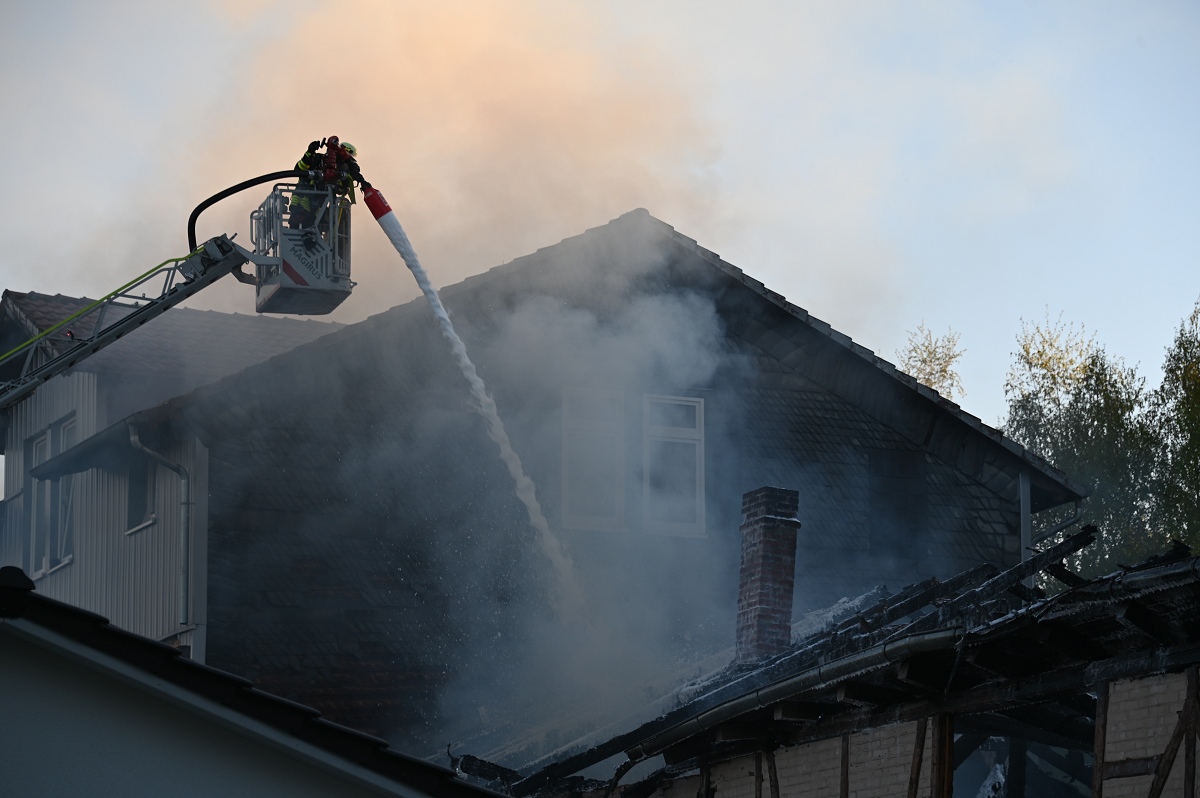 Beverungen (red). Nach dem Großbrand am Donnerstagnachmittag auf dem Gelände des Alten Bahnhofs in Beverungen liegen inzwischen weitere Erkenntnisse zum Einsatzverlauf und zum Ausmaß der Schäden vor. Demnach bestätigte sich, dass das Feuer im Bereich eines Anbaus ausbrach und sich von dort rasch ausbreitete. Eine Zeugin hatte gegen 16 Uhr Rauch aus dem Anbau des früheren Bahnhofsgebäudes bemerkt und die Einsatzkräfte alarmiert. Beim Eintreffen von Feuerwehr und Polizei stand der Dachstuhl bereits in Flammen, gegen 17 Uhr war er vollständig ausgebrannt. Das Feuer beschränkte sich nach Angaben der Einsatzleitung auf den Anbau, in dem unter anderem städtische Notunterkünfte untergebracht waren. Das angrenzende Gebäude mit einer Asylbewerberunterkunft blieb relativ verschont, wurde jedoch durch Hitze und Rauch ebenfalls in Mitleidenschaft gezogen. Die Feuerwehr kühlte das Gebäude vorsorglich dauerhaft, um ein Übergreifen der Flammen zu verhindern. Nach ersten Einschätzungen kann es vorerst nicht mehr bewohnt werden. Ein Anzeichen dafür sind die ausgelösten Rauchmelder im Gebäude, die auch am Abend noch lautstark schrillten. Das bedeutet, dass Rauch weit bis in das Wohngebäude vorgedrungen ist, wie die Feuerwehr erklärte. Die Bewohner wurden zunächst an anderen Orten untergebracht.