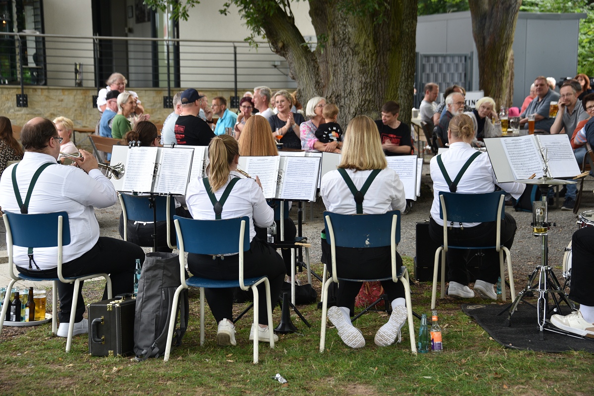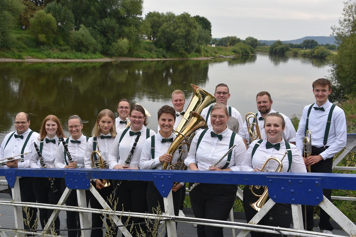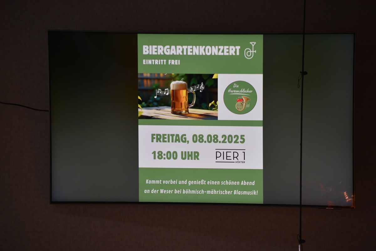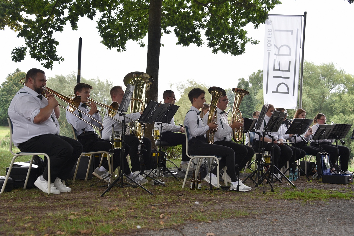Höxter (TKu). Am vergangenen Freitag feierte die neue Formation der „Herzensblecher“ ihre große Premiere im Pier1 und das mit Erfolg. Rund 200 Besucherinnen und Besucher genossen bei schönstem Sommerwetter einen Abend voller böhmisch-mährischer Blasmusik, kühlen Getränken und bester Stimmung direkt an der Weser. Die Entstehungsgeschichte der „Herzensblecher“ reicht bis ins Jahr 2021 zurück. Die Gründungsidee stammt von Sven Schafer und Julia Simon von der Blaskapelle Lüchtringen von 1958 e.V.. Beide wollten ein zusätzliches musikalisches Projekt ins Leben rufen, das sich von dem bestehenden Angebot abhebt. „Wir hatten einfach Bock auf mehr“, bringt es Schafer mit einem Lächeln auf den Punkt. Schnell fanden sich weitere begeisterte Musikerinnen und Musiker aus den Kapellen der Städte Beverungen, Brakel und Höxter. Heute besteht die Formation aus rund 20 Mitgliedern, die aus den Kapellen in Bökendorf, Brenkhausen, Godelheim, Herstelle, Lüchtringen und Ovenhausen stammen.