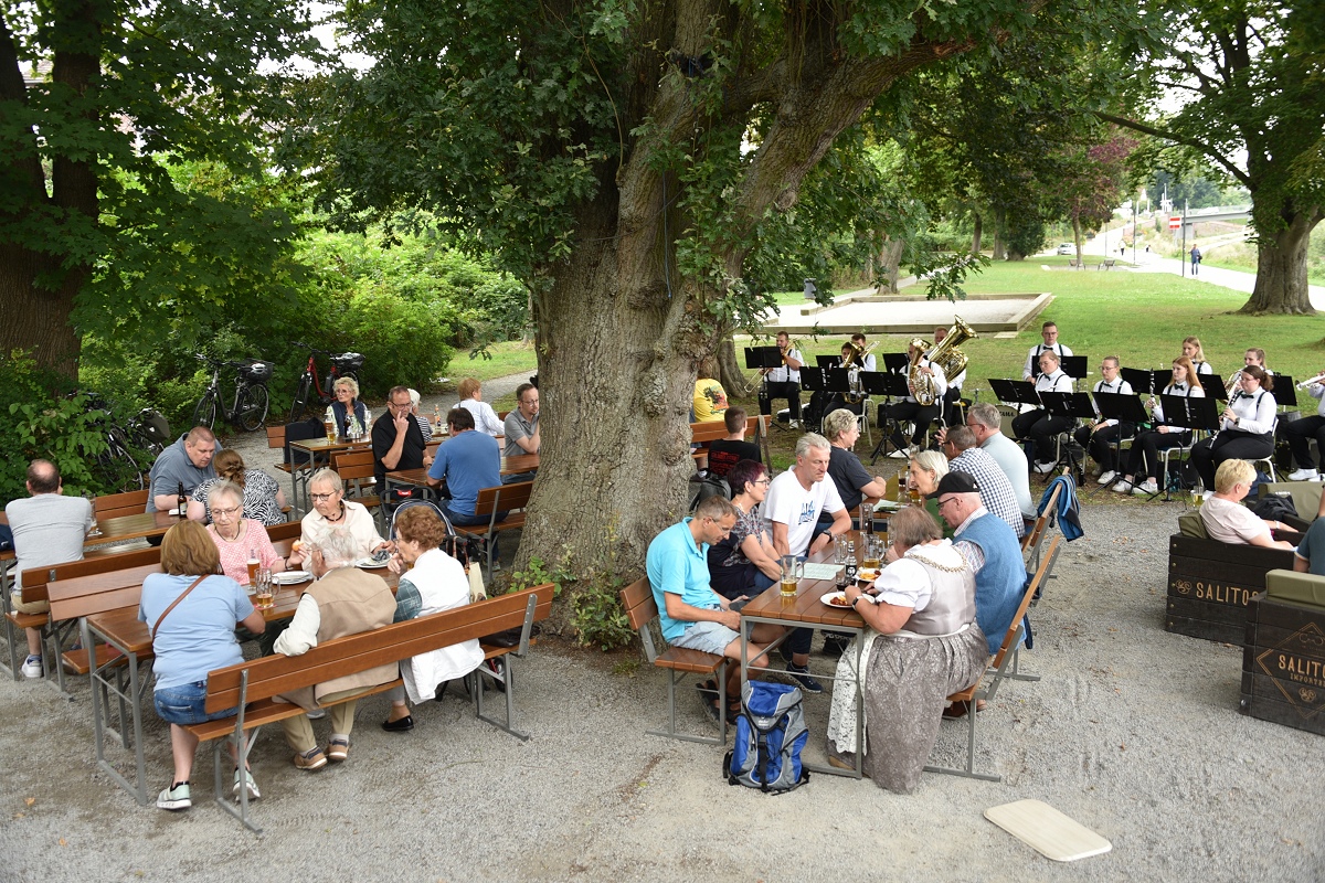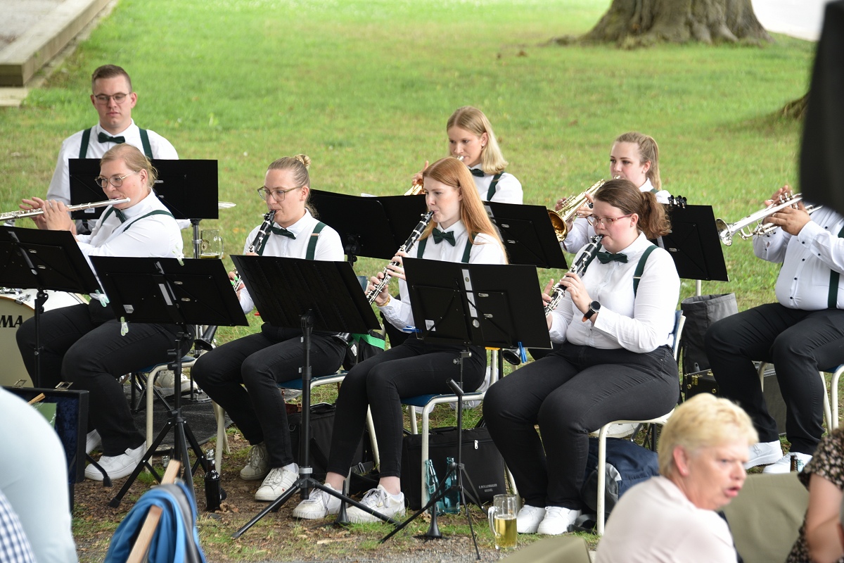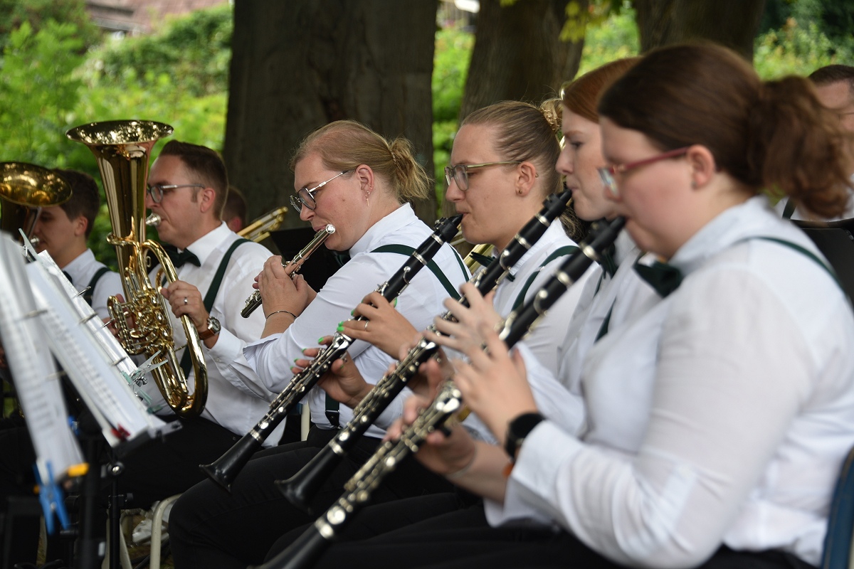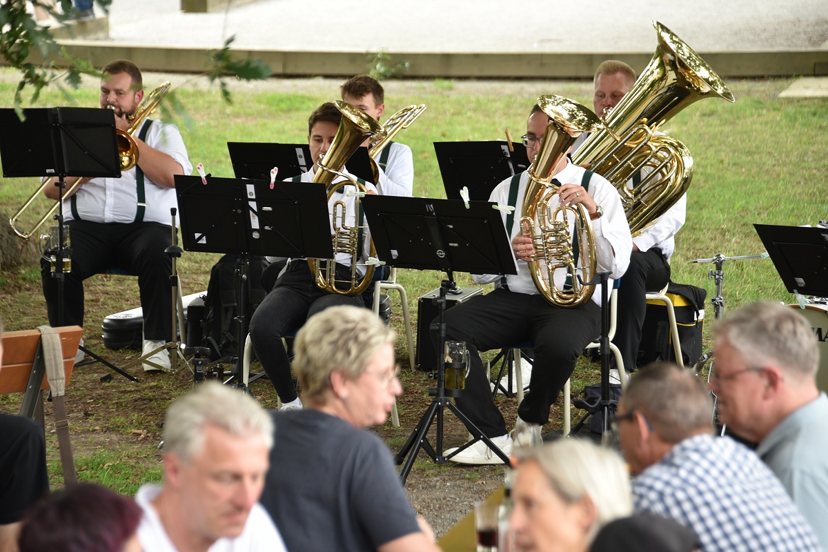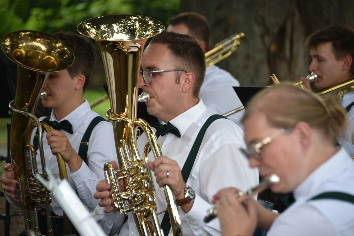 Höxter (TKu). Am vergangenen Freitag feierte die neue Formation der „Herzensblecher“ ihre große Premiere im Pier1 und das mit Erfolg. Rund 200 Besucherinnen und Besucher genossen bei schönstem Sommerwetter einen Abend voller böhmisch-mährischer Blasmusik, kühlen Getränken und bester Stimmung direkt an der Weser. Die Entstehungsgeschichte der „Herzensblecher“ reicht bis ins Jahr 2021 zurück. Die Gründungsidee stammt von Sven Schafer und Julia Simon von der Blaskapelle Lüchtringen von 1958 e.V.. Beide wollten ein zusätzliches musikalisches Projekt ins Leben rufen, das sich von dem bestehenden Angebot abhebt. „Wir hatten einfach Bock auf mehr“, bringt es Schafer mit einem Lächeln auf den Punkt. Schnell fanden sich weitere begeisterte Musikerinnen und Musiker aus den Kapellen der Städte Beverungen, Brakel und Höxter. Heute besteht die Formation aus rund 20 Mitgliedern, die aus den Kapellen in Bökendorf, Brenkhausen, Godelheim, Herstelle, Lüchtringen und Ovenhausen stammen.