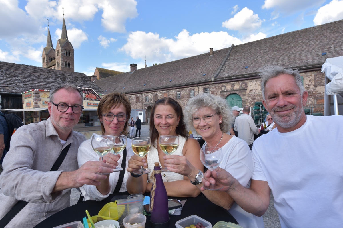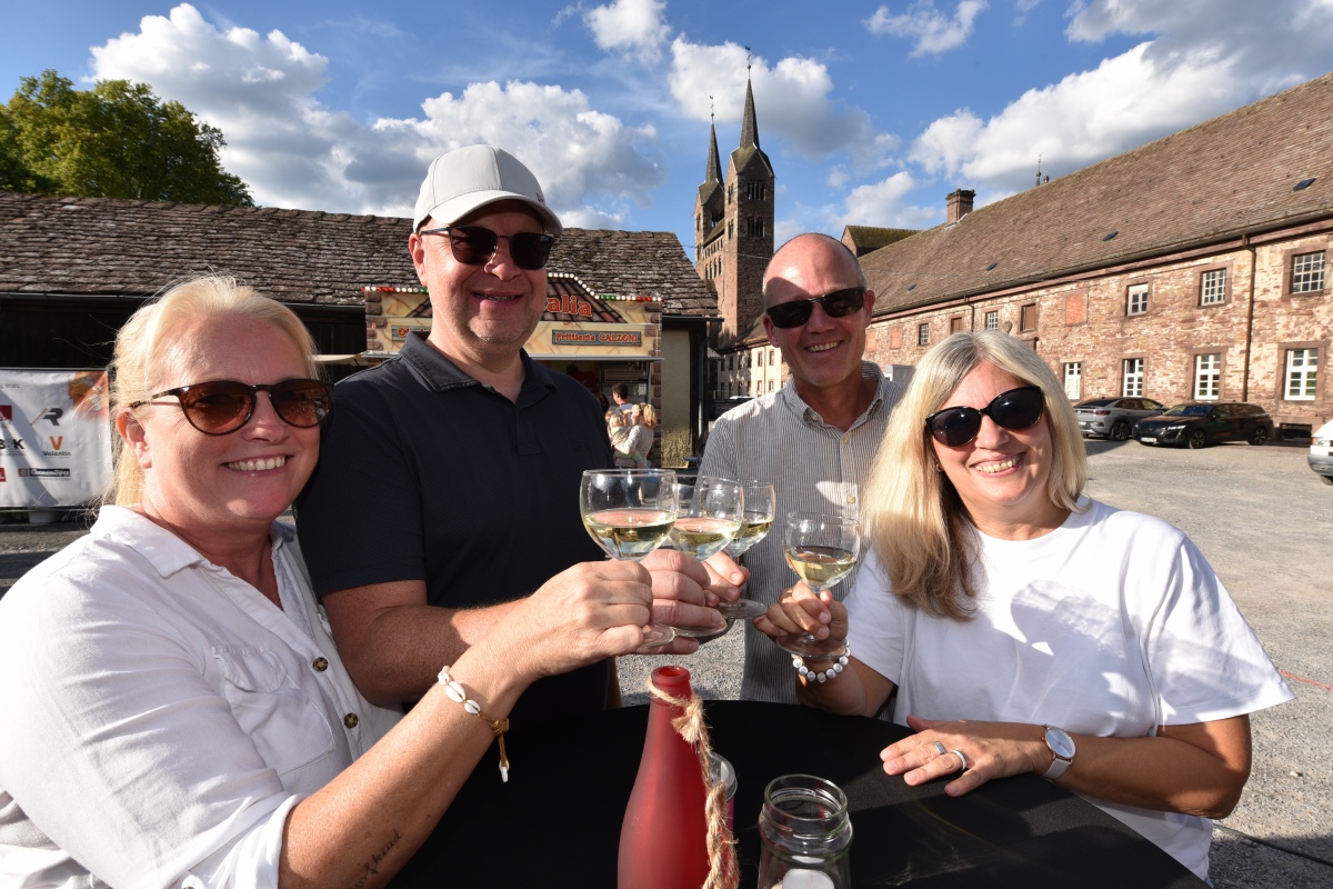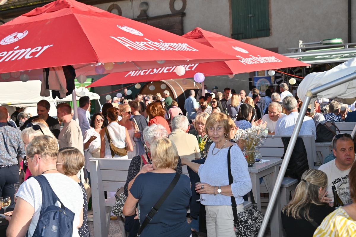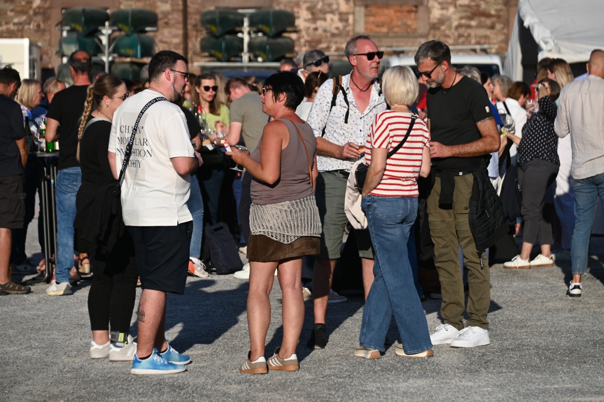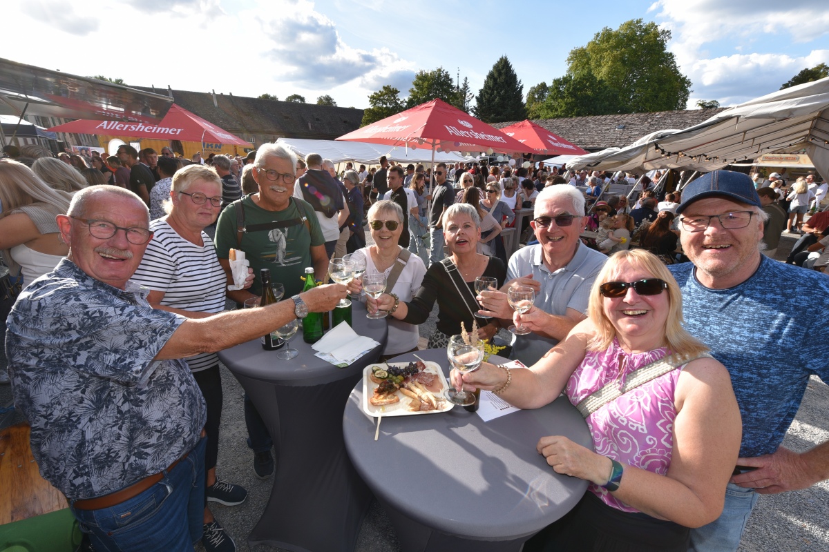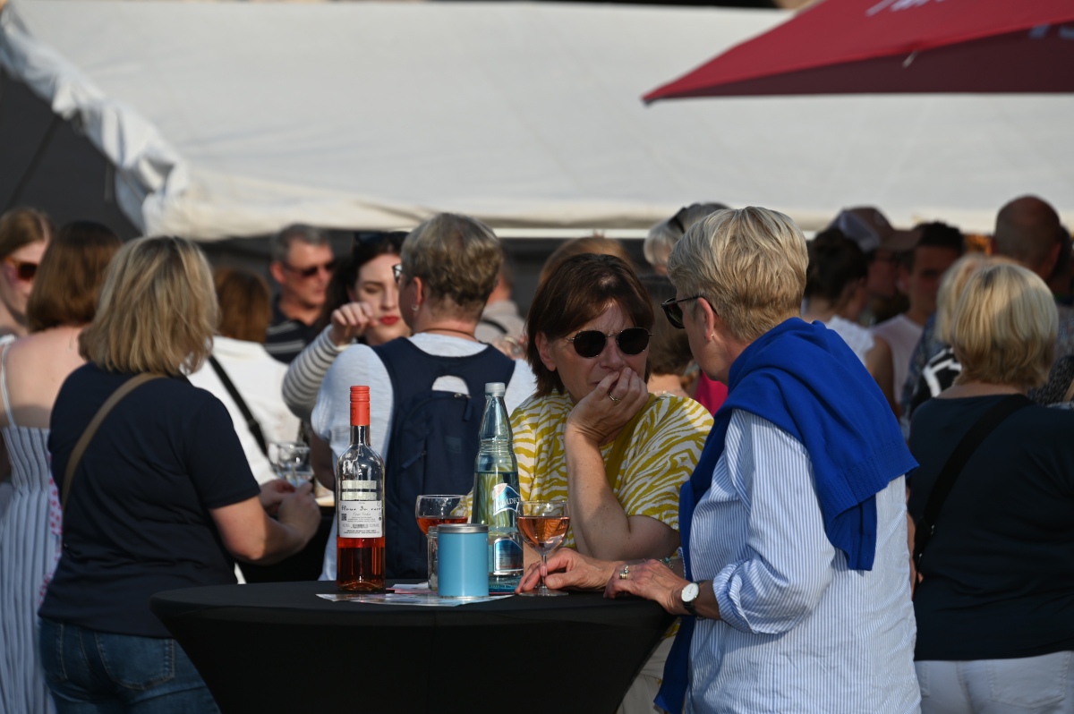 Höxter (TKu). So viele Gäste wie noch nie zog das Benefiz-Weinfest am vergangenen Samstag in den Corveyer Domänenhof: Geschätzt mehr als 1000 Besucherinnen und Besucher genossen bei erneut strahlendem Sonnenschein, gutem Wein, kulinarischen Spezialitäten und stimmungsvoller Musik das Weinfest. 1.003 Weinflaschen gingen über die Theke – im Vorjahr waren es 630. Bereits vor 16 Uhr strömten die ersten Gäste auf das Gelände vor dem Corveyer Weinhaus. Zum siebten Mal luden die Serviceclubs Ladies’ Circle 64 Höxter-Holzminden und Round Table 150 Höxter-Holzminden zu dem Fest ein, das bereits zum vierten Mal in der historischen Kulisse des Domänenhofs stattfand. „Bei traumhaftem Wetter und in malerischer Umgebung mit Blick auf das imposante Westwerk von Corvey bot sich eine ideale Atmosphäre“, meinte eine Besucherin, die ergänzt: „Die Atmosphäre des Domänenhofs passt perfekt zum Weinfest.“