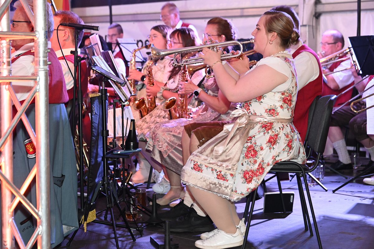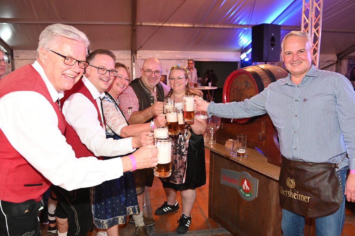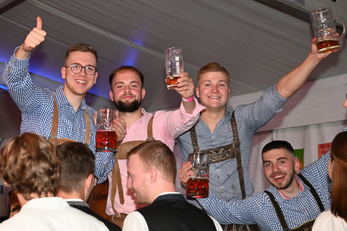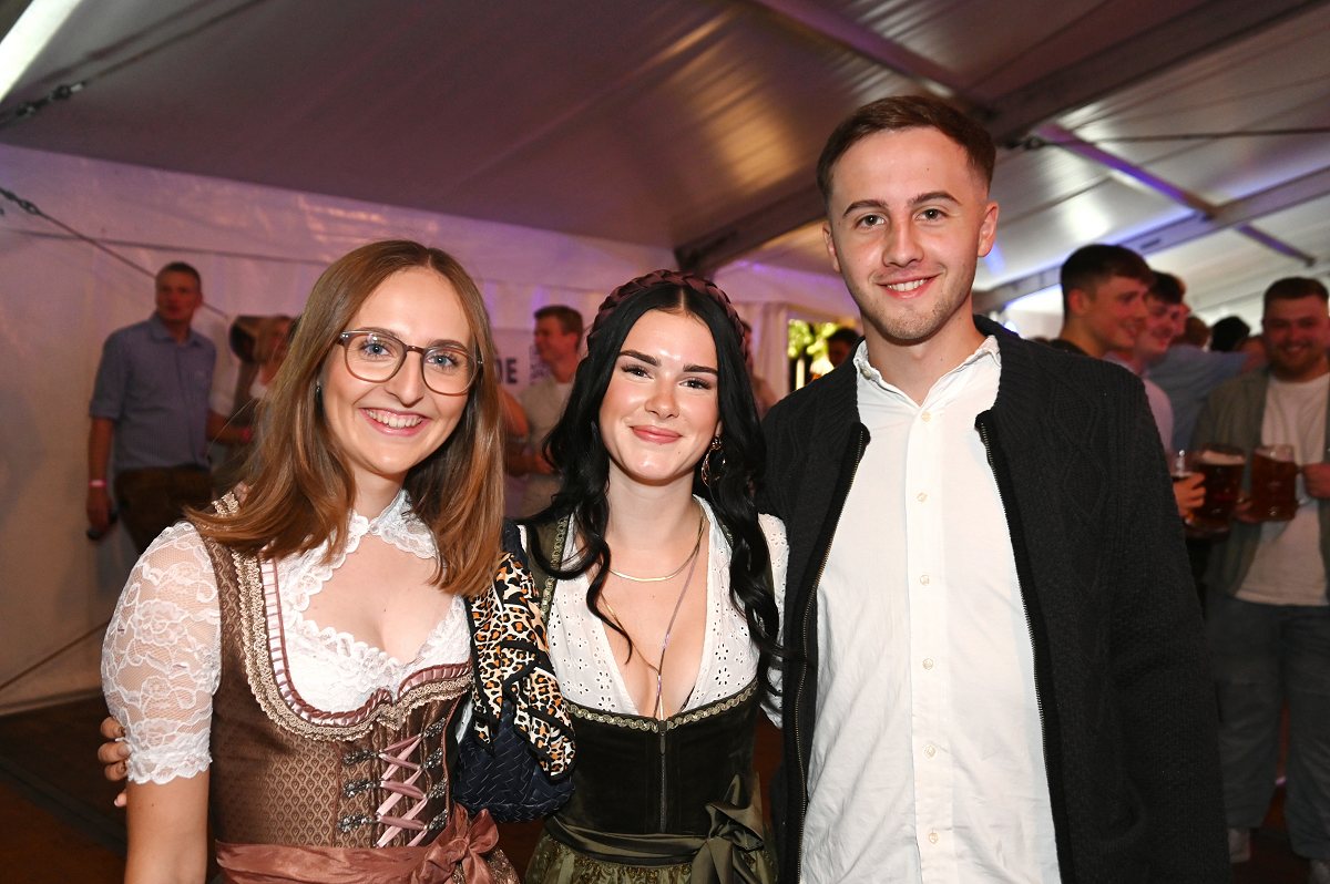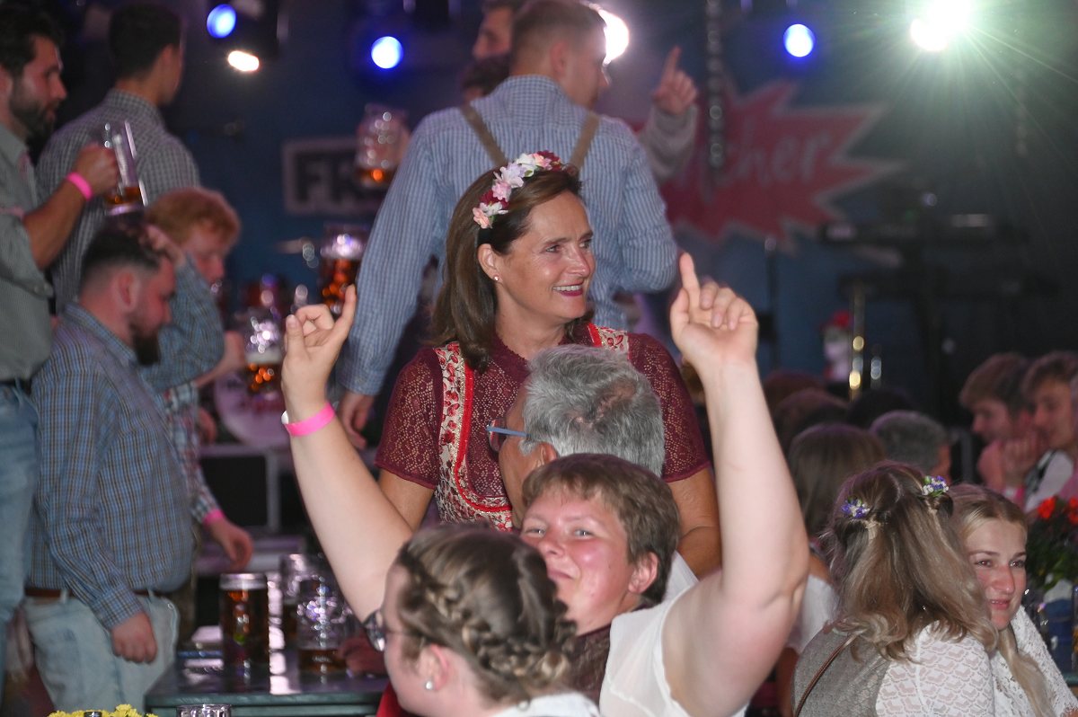 Lüchtringen (TKu). So war das Oktoberfest Lüchtringen: Zünftig, laut und voller Lebensfreude feierte Lüchtringen am vergangenen Wochenende sein Oktoberfest, die „Lüchtringer Wies’n“ und verwandelte das große Festzelt auf dem Festplatz im Lambertweg in ein Meer aus Dirndl und Lederhosen. Mehr als 1500 Besucherinnen und Besucher ließen sich die größte Oktoberfest-Party der Region nicht entgehen und sie wurden nicht enttäuscht. Mit zwei kräftigen Hammerschlägen zapfte Marcus Busse von der Brauerei Allersheim am Samstagabend das erste Fass an und eröffnete gemeinsam mit Festwirt Stefan Friedrich, dem Vorsitzenden der Blaskapelle Lüchtringen, Christoph Missing, sowie Dirigent Martin Heinemeyer das Fest. Damit war der Startschuss für zwei Tage voller Musik und Feierlaune gefallen. Den Auftakt gestaltete die gastgebende Blaskapelle Lüchtringen, ehe die „FrankenKracher“ mit ihrem Mix aus bayerischer Blasmusik und modernen Partyhits das Zelt zum Beben brachten.