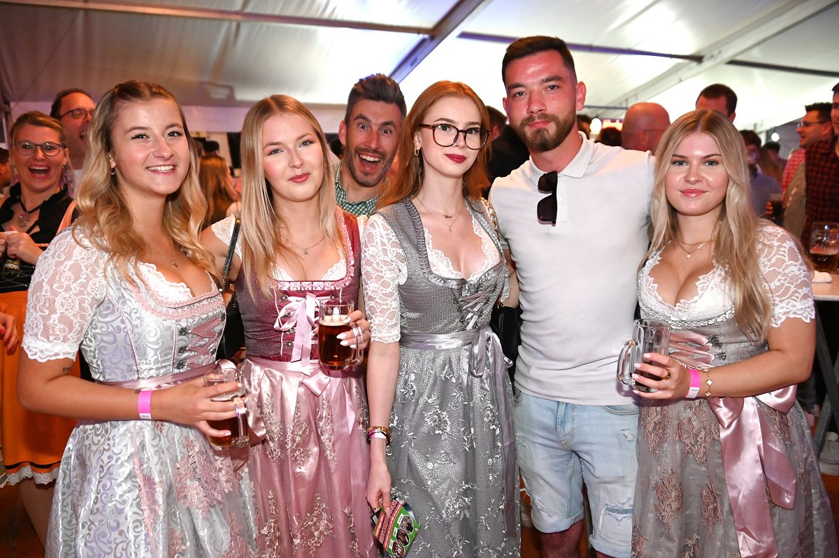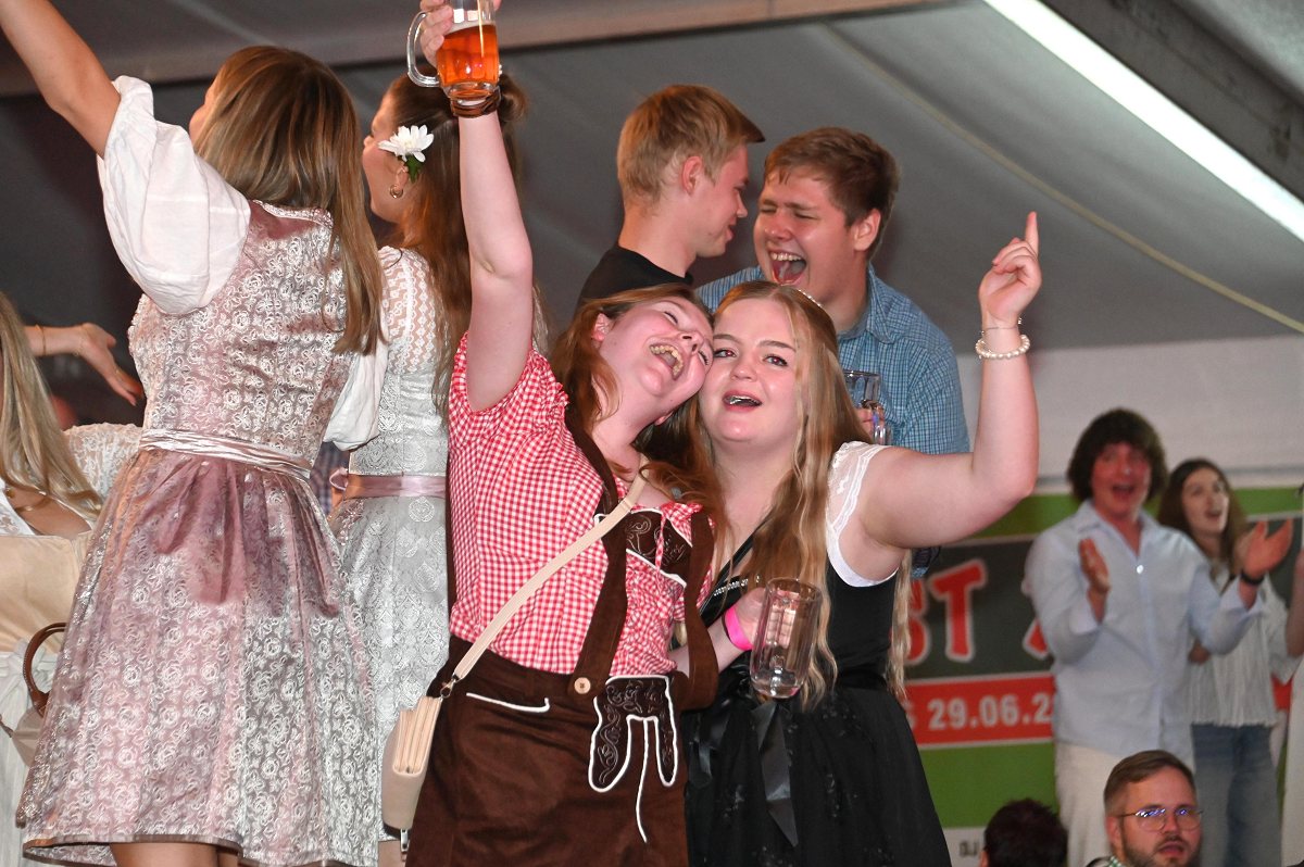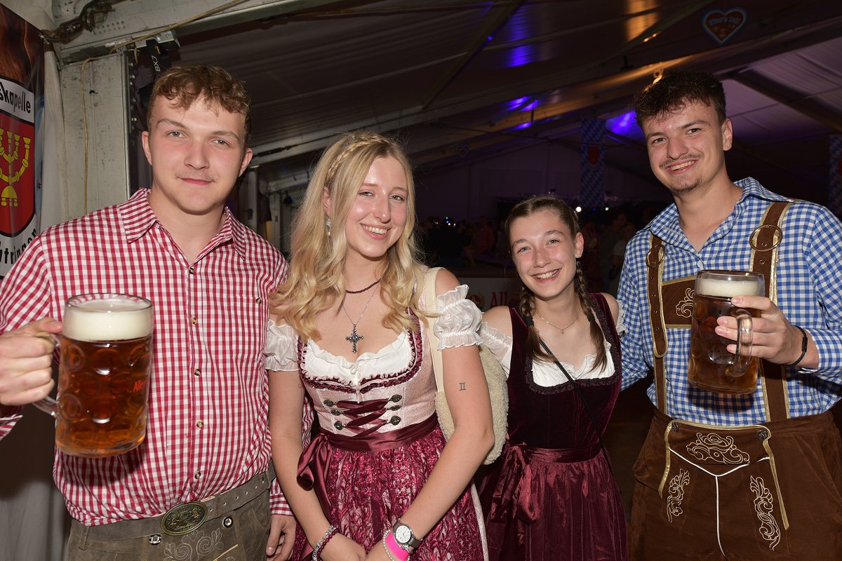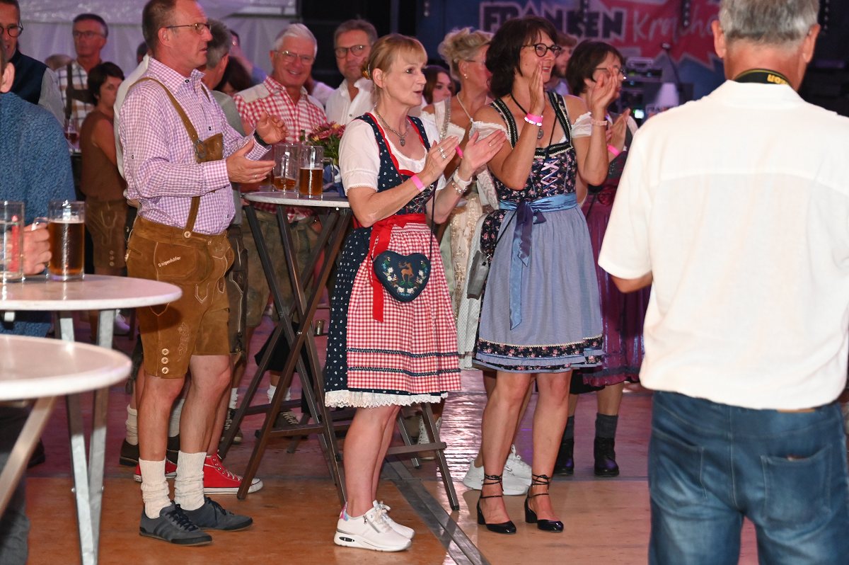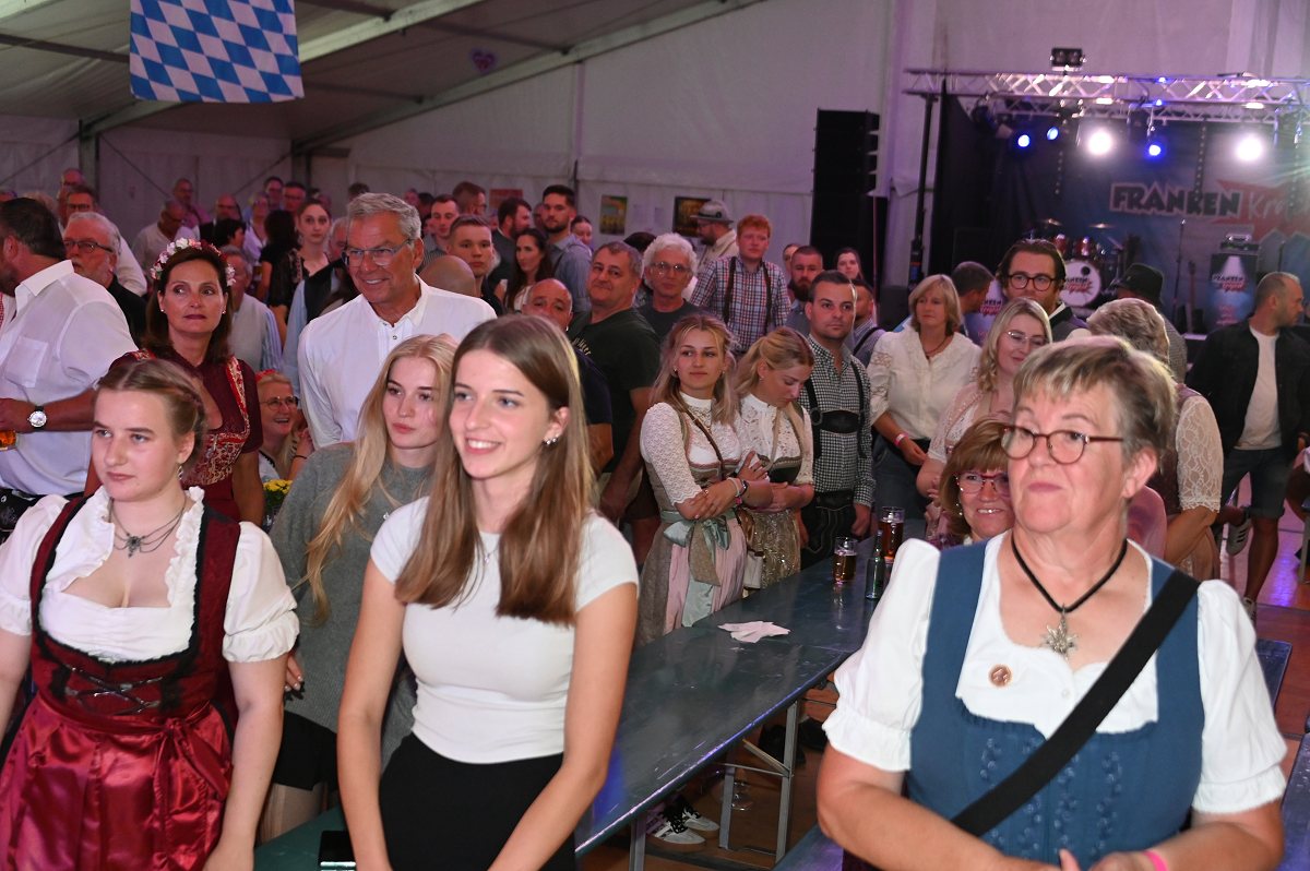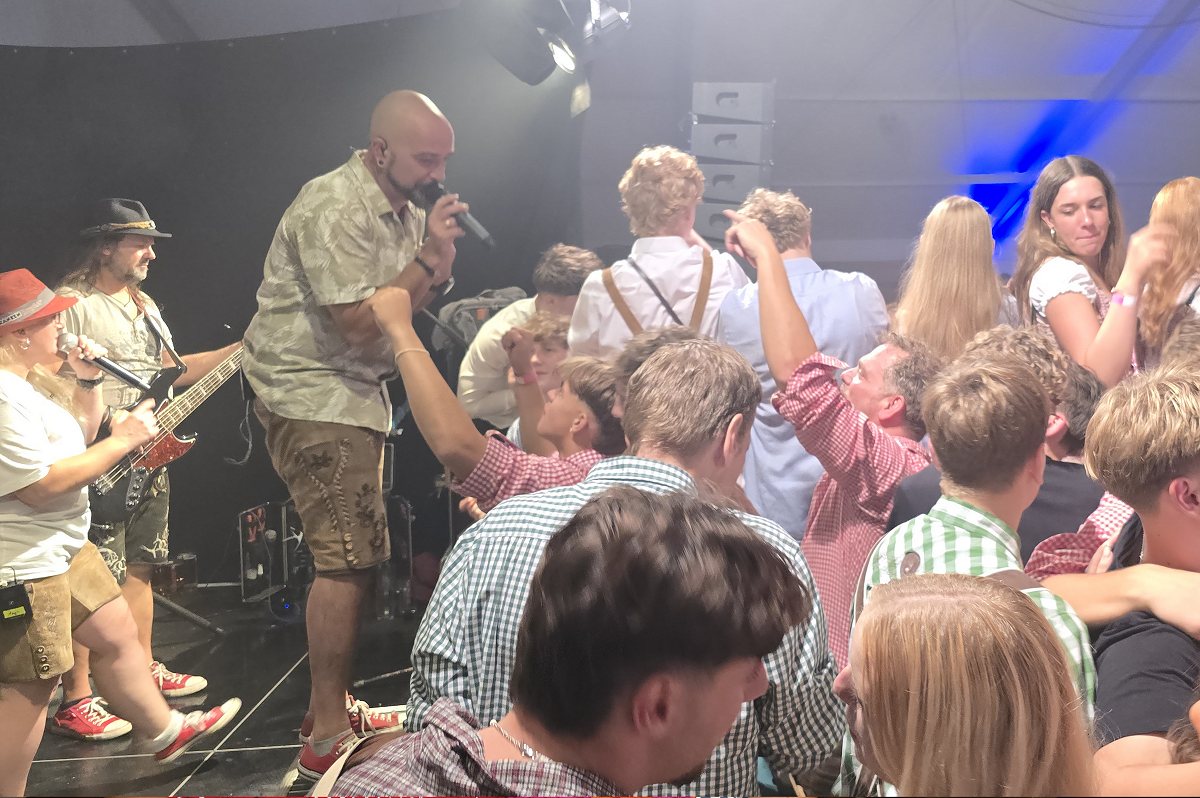Lüchtringen (TKu). So war das Oktoberfest Lüchtringen: Zünftig, laut und voller Lebensfreude feierte Lüchtringen am vergangenen Wochenende sein Oktoberfest, die „Lüchtringer Wies’n“ und verwandelte das große Festzelt auf dem Festplatz im Lambertweg in ein Meer aus Dirndl und Lederhosen. Mehr als 1500 Besucherinnen und Besucher ließen sich die größte Oktoberfest-Party der Region nicht entgehen und sie wurden nicht enttäuscht. Mit zwei kräftigen Hammerschlägen zapfte Marcus Busse von der Brauerei Allersheim am Samstagabend das erste Fass an und eröffnete gemeinsam mit Festwirt Stefan Friedrich, dem Vorsitzenden der Blaskapelle Lüchtringen, Christoph Missing, sowie Dirigent Martin Heinemeyer das Fest. Damit war der Startschuss für zwei Tage voller Musik und Feierlaune gefallen. Den Auftakt gestaltete die gastgebende Blaskapelle Lüchtringen, ehe die „FrankenKracher“ mit ihrem Mix aus bayerischer Blasmusik und modernen Partyhits das Zelt zum Beben brachten.