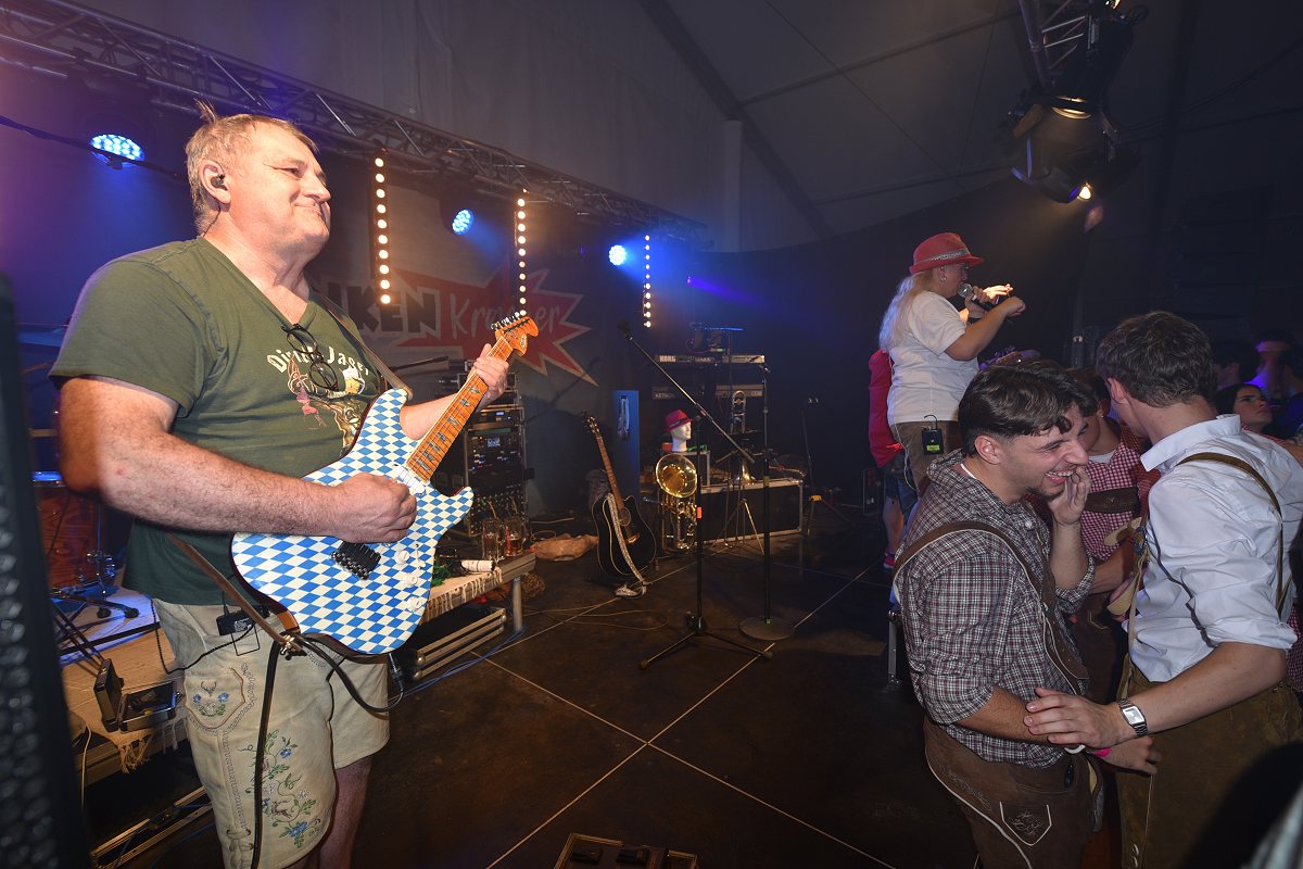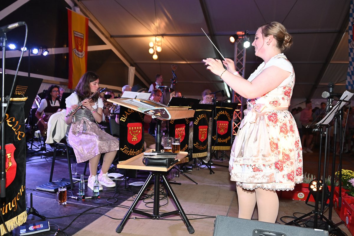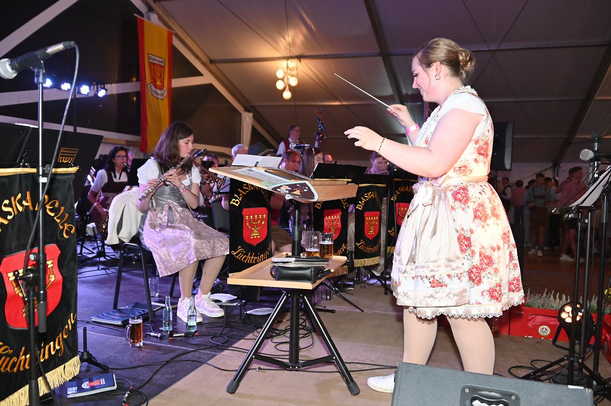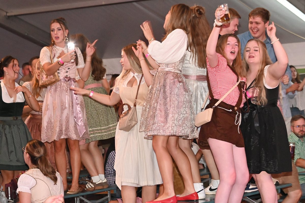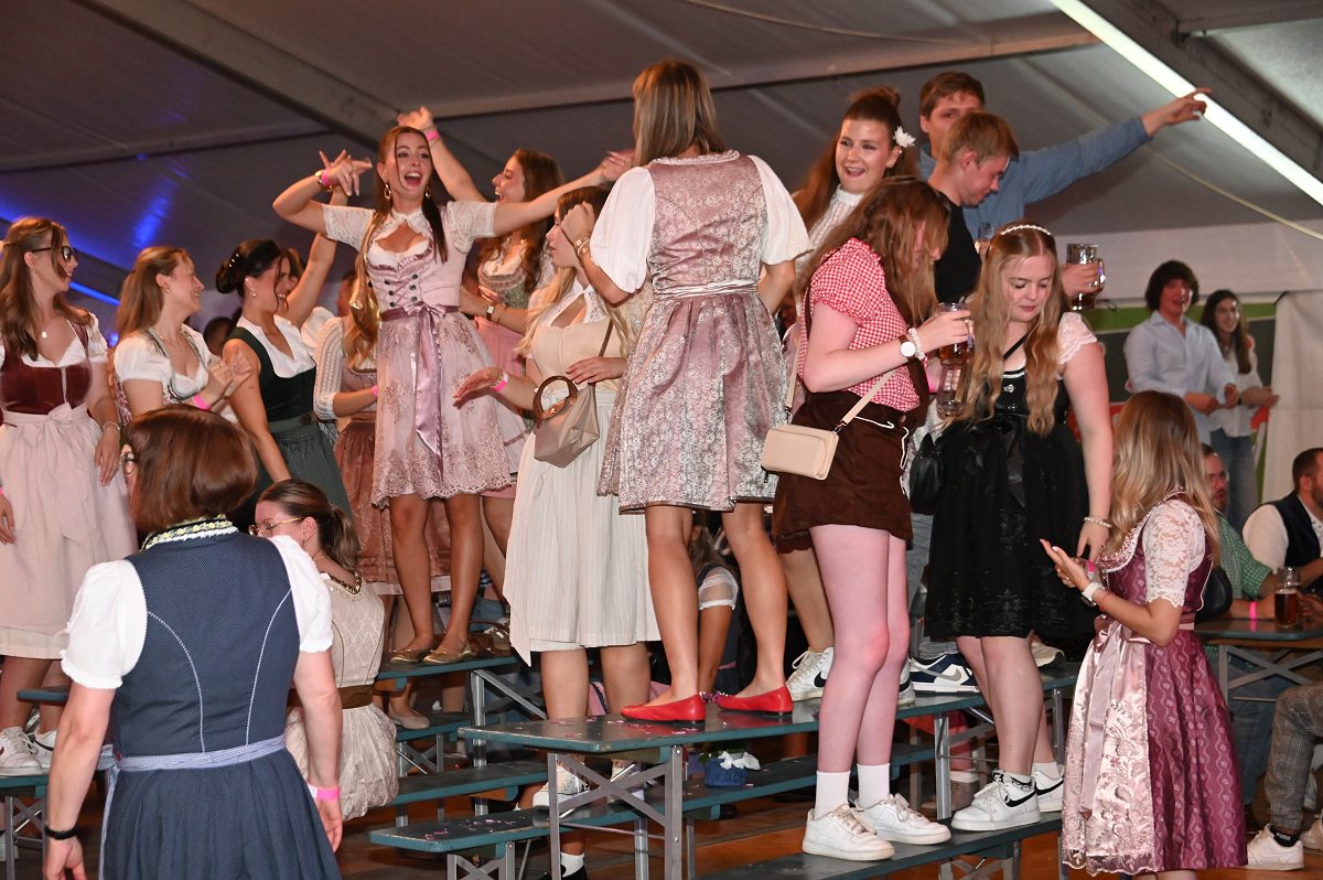 Lüchtringen (TKu). So war das Oktoberfest Lüchtringen: Zünftig, laut und voller Lebensfreude feierte Lüchtringen am vergangenen Wochenende sein Oktoberfest, die „Lüchtringer Wies’n“ und verwandelte das große Festzelt auf dem Festplatz im Lambertweg in ein Meer aus Dirndl und Lederhosen. Mehr als 1500 Besucherinnen und Besucher ließen sich die größte Oktoberfest-Party der Region nicht entgehen und sie wurden nicht enttäuscht. Mit zwei kräftigen Hammerschlägen zapfte Marcus Busse von der Brauerei Allersheim am Samstagabend das erste Fass an und eröffnete gemeinsam mit Festwirt Stefan Friedrich, dem Vorsitzenden der Blaskapelle Lüchtringen, Christoph Missing, sowie Dirigent Martin Heinemeyer das Fest. Damit war der Startschuss für zwei Tage voller Musik und Feierlaune gefallen. Den Auftakt gestaltete die gastgebende Blaskapelle Lüchtringen, ehe die „FrankenKracher“ mit ihrem Mix aus bayerischer Blasmusik und modernen Partyhits das Zelt zum Beben brachten.
