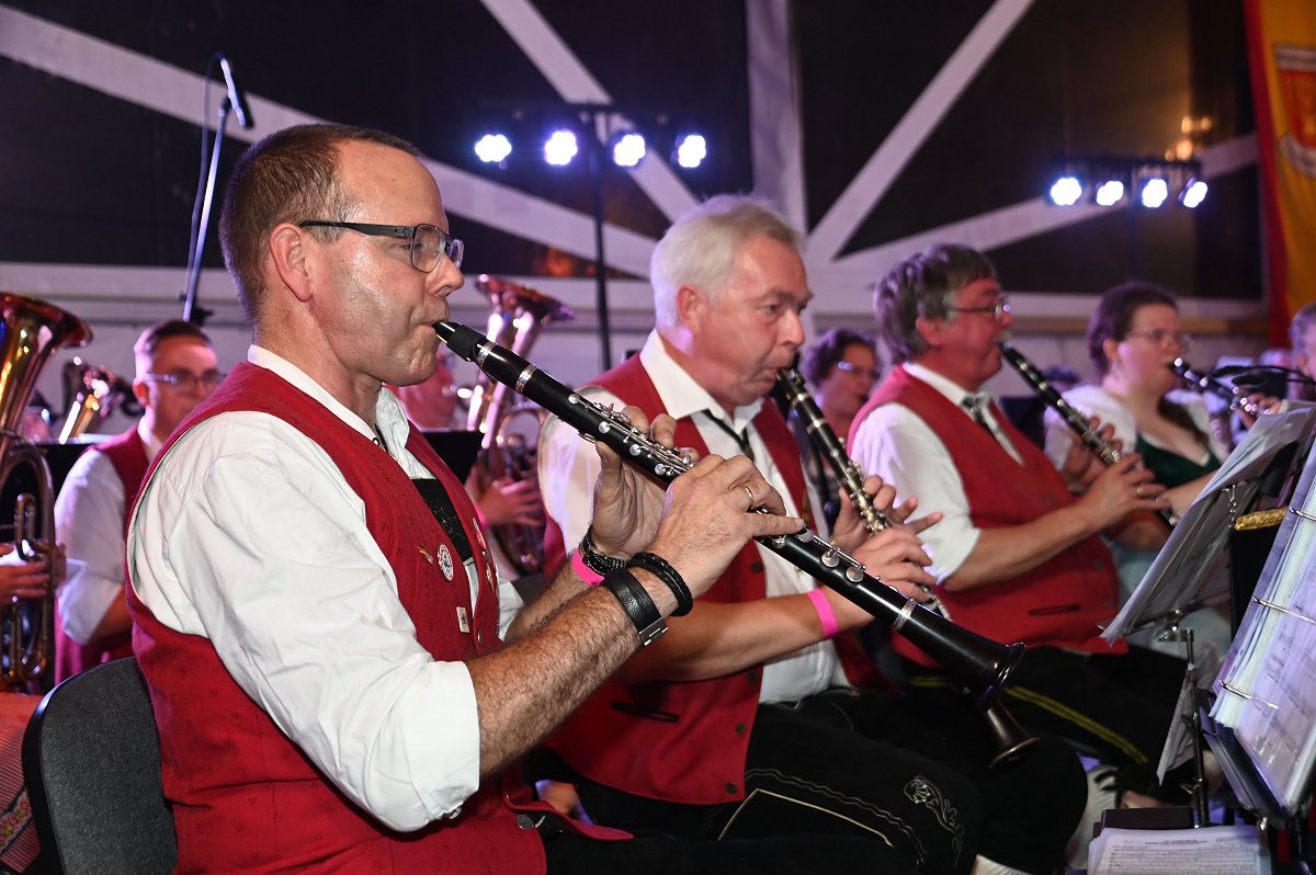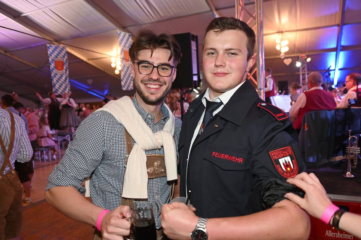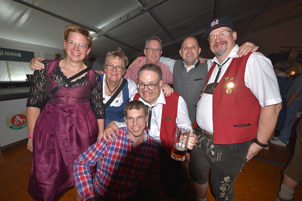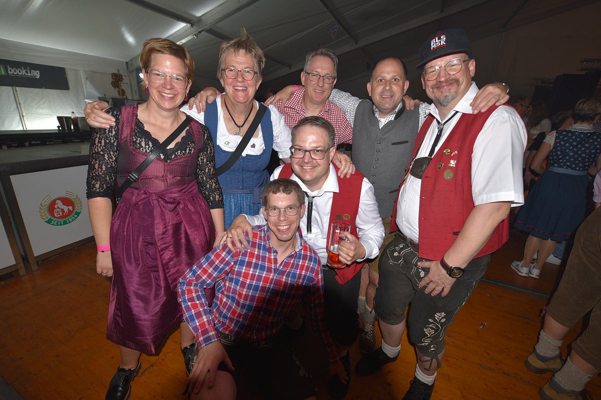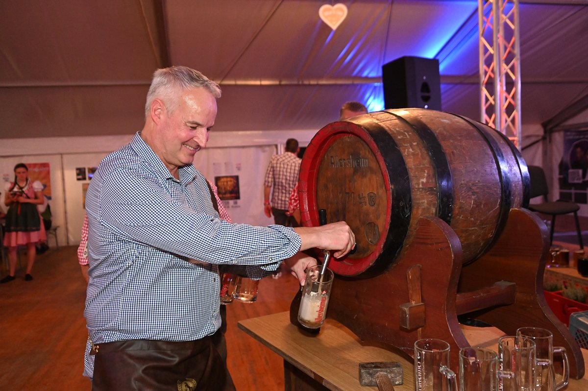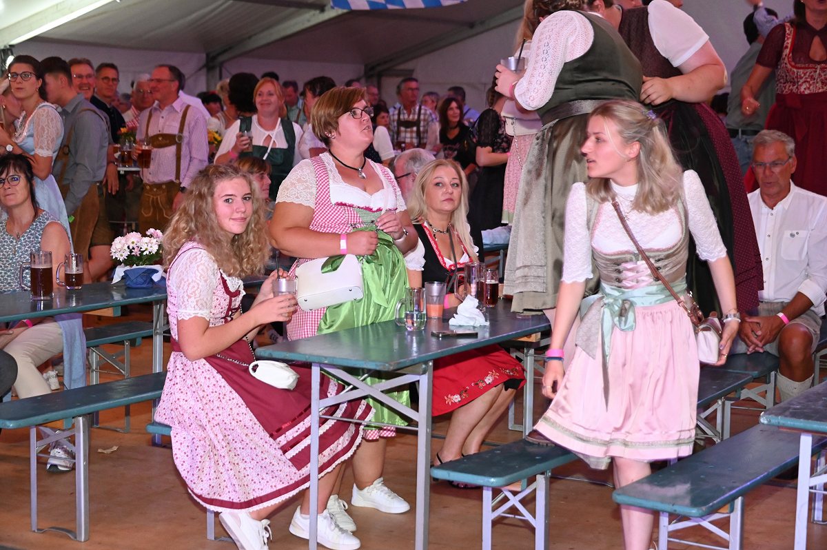 Lüchtringen (TKu). So war das Oktoberfest Lüchtringen: Zünftig, laut und voller Lebensfreude feierte Lüchtringen am vergangenen Wochenende sein Oktoberfest, die „Lüchtringer Wies’n“ und verwandelte das große Festzelt auf dem Festplatz im Lambertweg in ein Meer aus Dirndl und Lederhosen. Mehr als 1500 Besucherinnen und Besucher ließen sich die größte Oktoberfest-Party der Region nicht entgehen und sie wurden nicht enttäuscht. Mit zwei kräftigen Hammerschlägen zapfte Marcus Busse von der Brauerei Allersheim am Samstagabend das erste Fass an und eröffnete gemeinsam mit Festwirt Stefan Friedrich, dem Vorsitzenden der Blaskapelle Lüchtringen, Christoph Missing, sowie Dirigent Martin Heinemeyer das Fest. Damit war der Startschuss für zwei Tage voller Musik und Feierlaune gefallen. Den Auftakt gestaltete die gastgebende Blaskapelle Lüchtringen, ehe die „FrankenKracher“ mit ihrem Mix aus bayerischer Blasmusik und modernen Partyhits das Zelt zum Beben brachten.