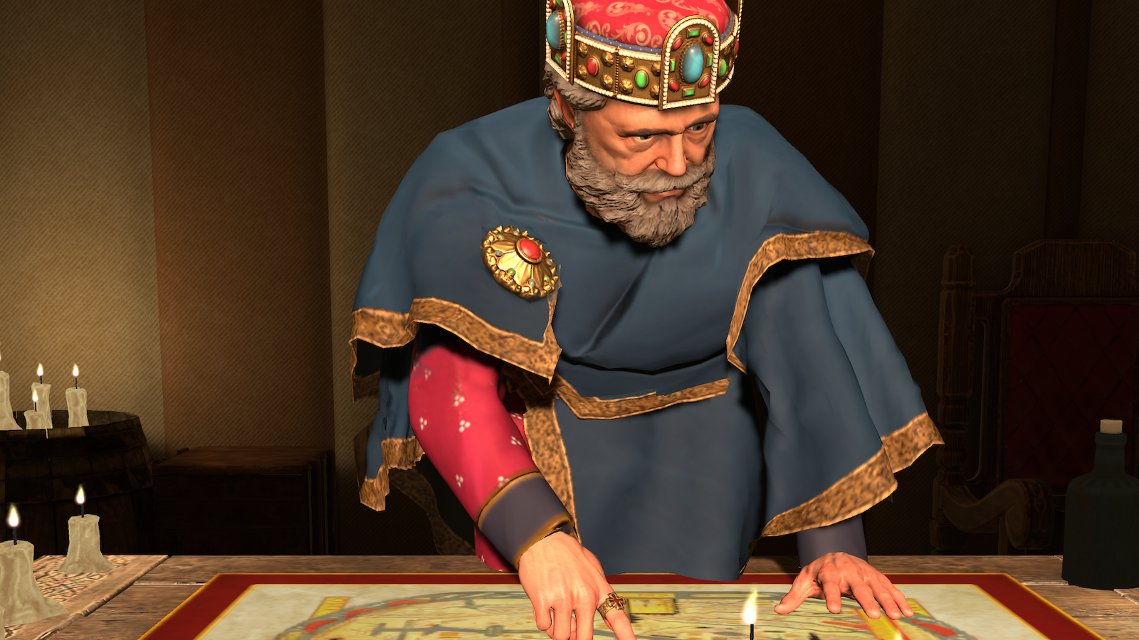Die Besucher setzen eine VR-Brille auf und schon stehen sie im von Kerzen sanft erleuchteten  Zelt des Frankenkönigs. Karl empfängt seine Gäste gebeugt über einen Tisch, auf dem Bilder passend zu den besprochenen Themen eingeblendet werden. Der spätere Kaiser ist prächtig gewandet und trägt seine Krone. Er begrüßt die Besucher mit den Worten: „Friede sei mit dir, der du mein Zelt betrittst. Ich bin Karl, Sohn Pippins, König durch Gottes Gnade.“