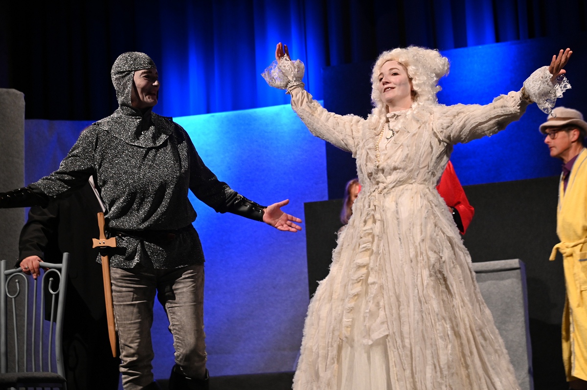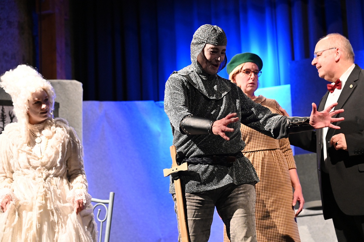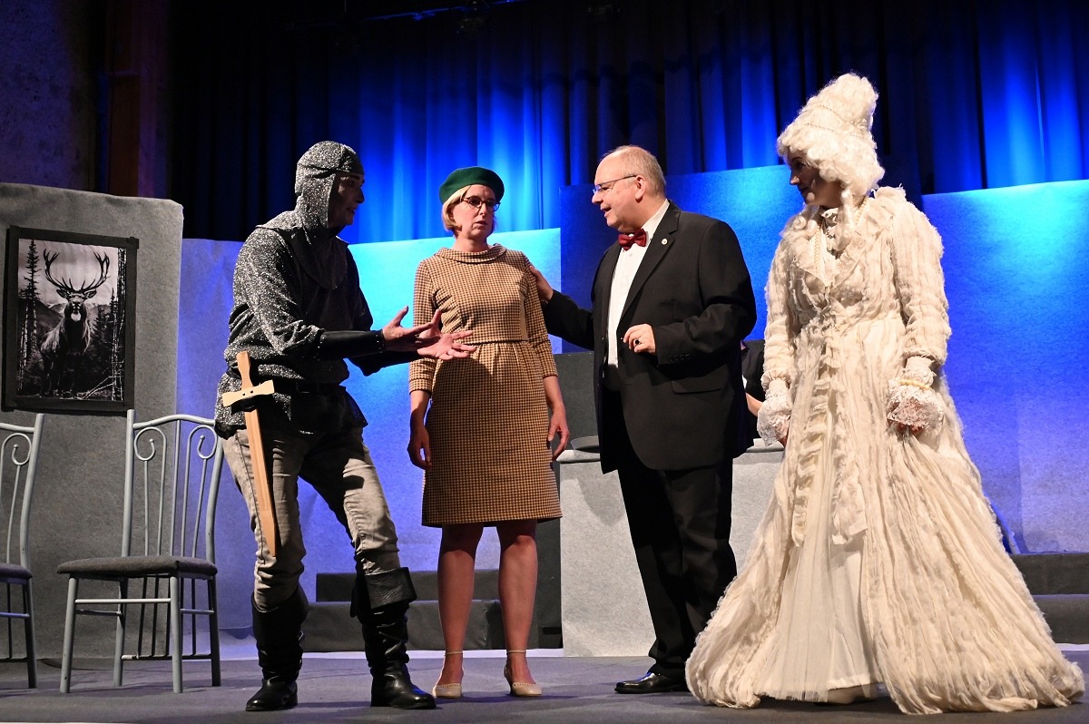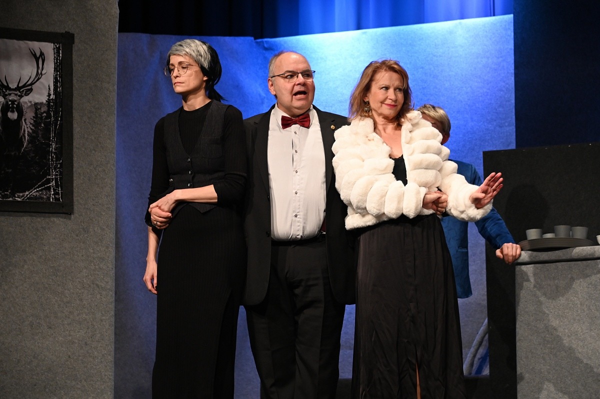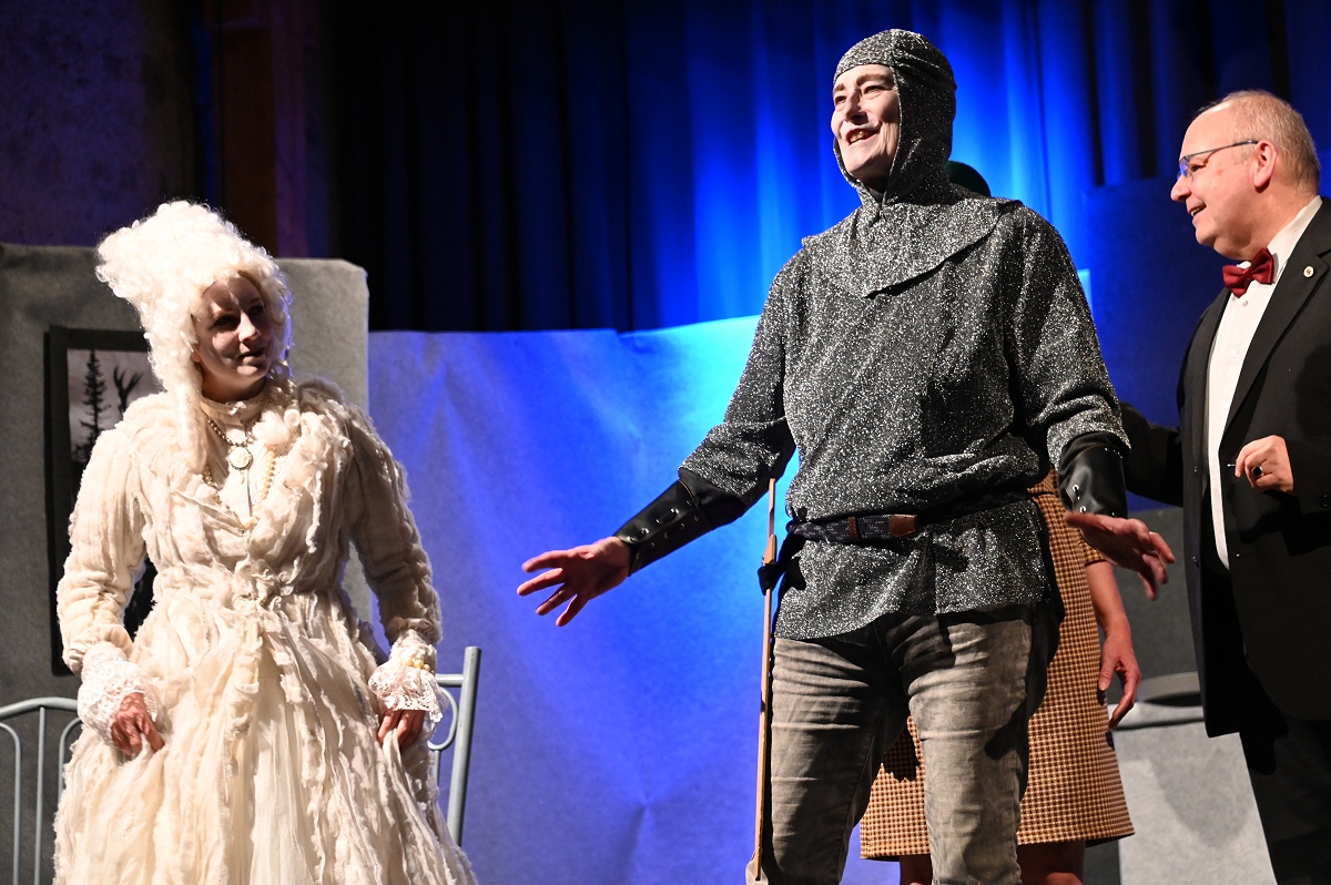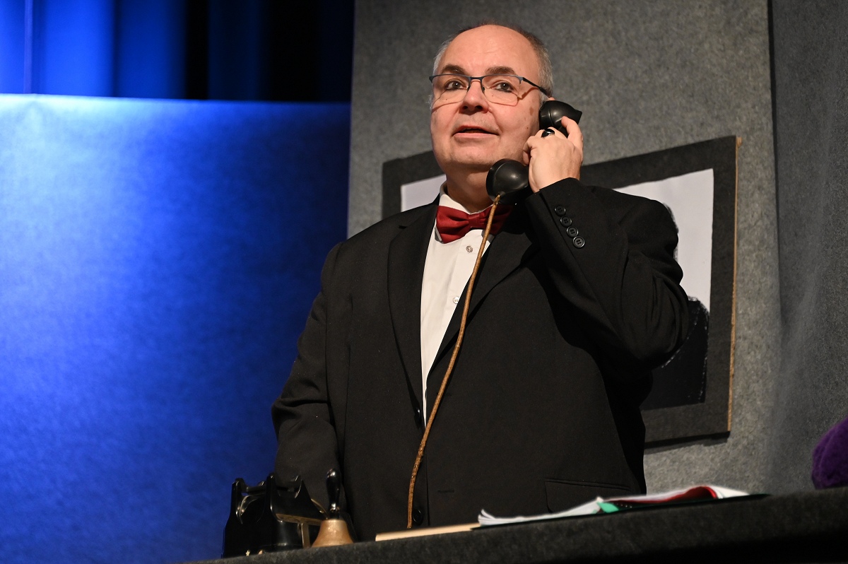 Ottbergen (TKu). Das Theater-Ensemble ThimKu, Theater im Kuhstall, hat am vergangenen Wochenende mit seiner neuen Komödie „Burghotel Schlosshof – Kredit wird nicht gegeben“ von Evelyn Köster erfolgreich abgeliefert. Am 8. und 9. November feierte das Stück im voll besetzten Kuhstall in Ottbergen seine Premiere mit zwei Aufführungen. Das Publikum zeigte sich begeistert von der turbulenten Handlung und dem, mit viel Freude agierenden, Ensemble, das an beiden Abenden mit viel Applaus belohnt wurde. Im Mittelpunkt der Aufführung steht das Burghotel Schlosshof, ein in die Jahre gekommener Hotelkomplex, der kurz vor dem Aus steht. Hoteldirektor Fröhlitsch, seine Mitarbeiterinnen Pitrella Partinowa und Hannelore Prügelhausen sowie zwei liebreizende Geister setzen große Hoffnungen in eine illustre Gästeschar. Doch unter ihnen soll sich auch ein Spion der Finanz- und Bilanz AG befinden. Mit einer Mischung aus Humor, Spannung und skurrilen Eigenheiten nimmt das Ensemble das Publikum mit in eine Welt voller Rätsel, Notizbücher und schräger Überraschungen. Besonders war dieser Premierenstart auch für Maren Schlebusch, Gründungsmitglied des ThimKu e. V., die mit dieser Inszenierung ihr Regiedebüt gab.