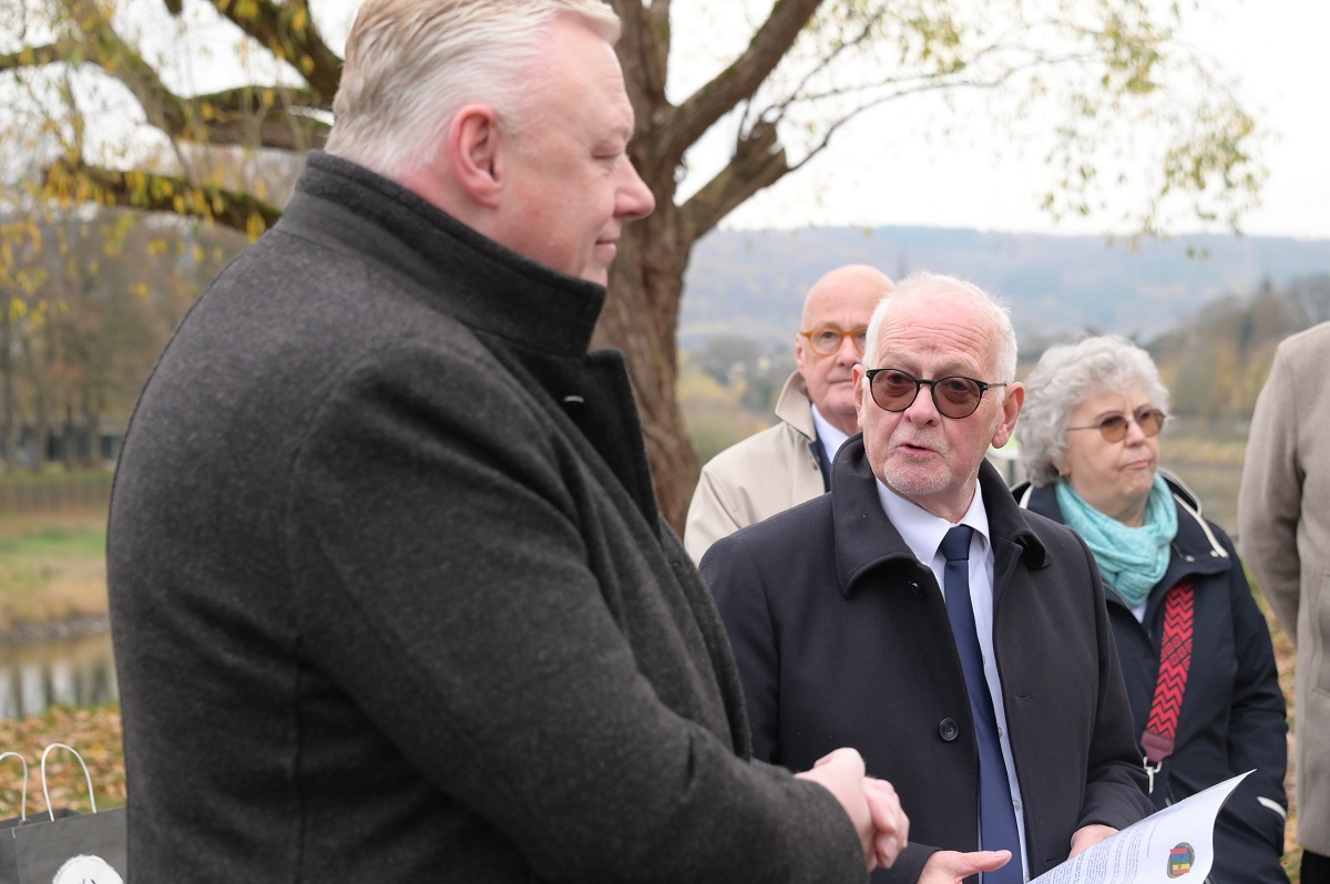 Höxter (TKu). Es gibt Momente, in denen Stadtgeschichte nicht im Rathaus geschrieben wird, sondern an Orten, an denen niemand damit rechnet. Vor 40 Jahren war es ein Kaminfeuer im Schloss Corvey, das den Funken für eine Initiative zündete, die bis heute nachwirkt. Einige Höxteraner saßen damals beisammen, unter ihnen Unternehmer, Handwerker und Freiberufler, unterschiedliche Typen, aber mit einem gemeinsamen Impuls: „Wenn wir sehen, dass etwas getan werden muss, dann tun wir es“, heißt es von dem „Freundeskreis Corveyer Dynamiker“, die auch nach 40 Jahren noch sehr aktiv sind. Ihr Jubiläumfest, das mit einer Andacht in der Weinbergkapelle in Höxter gestartet ist, wurde später auf der Weserscholle und in der Weinstube von Corvey, wo sich die Dynamiker einst gegründet haben, fortgesetzt. Vier Jahrzehnte später dankte Bürgermeister Daniel Hartmann den Dynamikern auf der Weserscholle für ihr Engagement, an jenem Ort, an dem die Dynamiker erst im vergangenen Jahr ihr jüngstes Projekt vollendet haben: die neue Toilettenanlage, im Volksmund längst zum „Schollenklo“ geworden. Eine schlichte, aber dringend benötigte Einrichtung, nachhaltig in Holzständerbauweise errichtet, mit Damen-, Herren- und barrierefreiem Bereich.