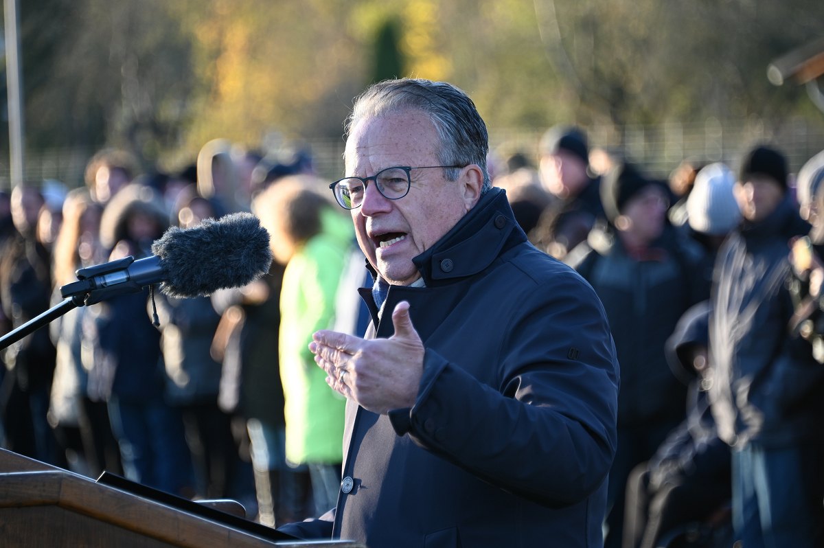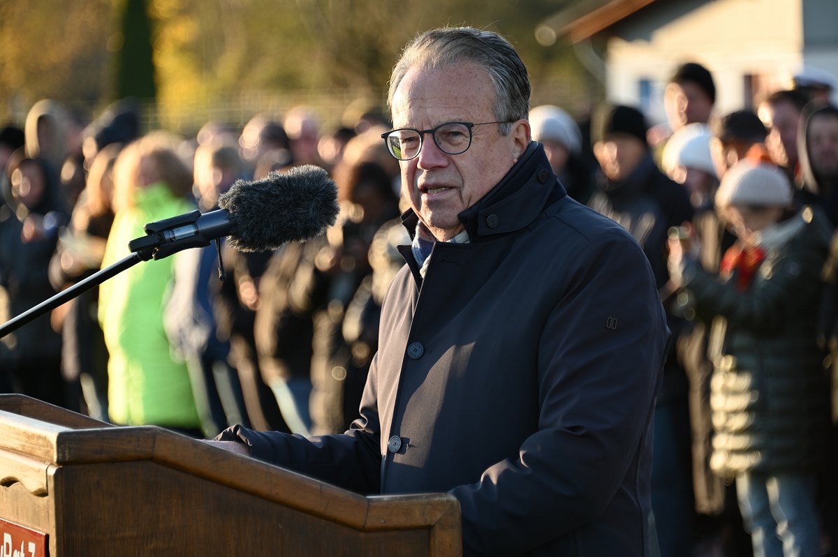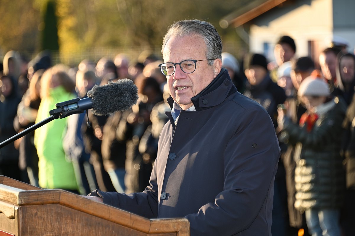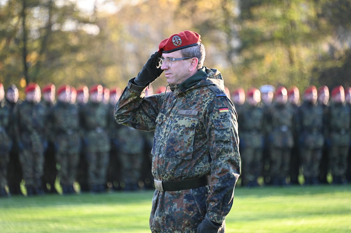 Besondere Aufmerksamkeit galt den 18 Rekrutinnen und Rekruten, die stellvertretend für alle Angetretenen vor die Truppenfahnen traten. Im Anschluss ergriff Dr. h.c. Frank-Jürgen Weise, Oberst der Reserve, das Wort. In seiner eindrucksvollen Rede machte er deutlich, dass Freiheit und Recht zu verteidigen längst keine Floskel mehr seien. Er sprach offen über sicherheitspolitische Herausforderungen, die Europa heute beschäftigen, und warnte vor den zunehmenden hybriden Bedrohungen, die längst im Alltag angekommen seien. Zugleich betonte er, dass Deutschland trotz aller Spannungen nicht in unmittelbarer Kriegsgefahr stehe, auch, weil die Stärke der NATO eindeutig sei. Vor allem aber richtete er seinen Blick auf die Rekrutinnen und Rekruten: Ihr Dienst sei wertvoll, ihre Ausbildung bedeutend, und die Erfahrungen, die sie sammeln, könnten sie ein Leben lang prägen.