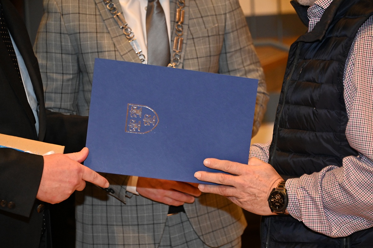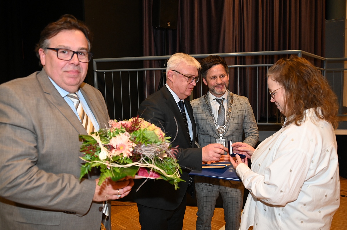 Mit drei Urkunden und Blumensträußen wurden zunächst die Ehrenamtspreisträger gewürdigt. Als einen „Mann, der anpackt“ bezeichnete Wenkel den ersten Preisträger, Lothar Rose aus Jakobsberg. In seiner Laudatio hob Bürgermeister Wenkel insbesondere Roses unermüdlichen Einsatz für sein Dorf hervor. Ob als kirchlicher Funktionsträger, für seine Renovierungsarbeiten an der Kapelle, dem Pfarrheim, dem Kriegerdenkmal oder am örtlichen Brunnen, Rose sei stets zur Stelle, wenn praktisch angepackt werden müsse. Mit handwerklichem Können setzte er Natursteinmauern instand, half beim Aufbau von Liegebänken und unterstützte zahlreiche Maßnahmen, die das Dorfleben verschönern. Auch beruflich habe er Spuren hinterlassen: als langjähriger Mitarbeiter des Bauhofs, als Hauswart im Asylbereich sowie als Hausmeister der Beverunger Schulen. Zudem bereichert er mit seinen Brüdern als Musiker regelmäßig Feste im Ort. Der Ehrenamtspreis geht an Lothar Rose, einen Mann, „der mit Taten überzeugt und mit seinem Wesen bereichert“, so der Bürgermeister.