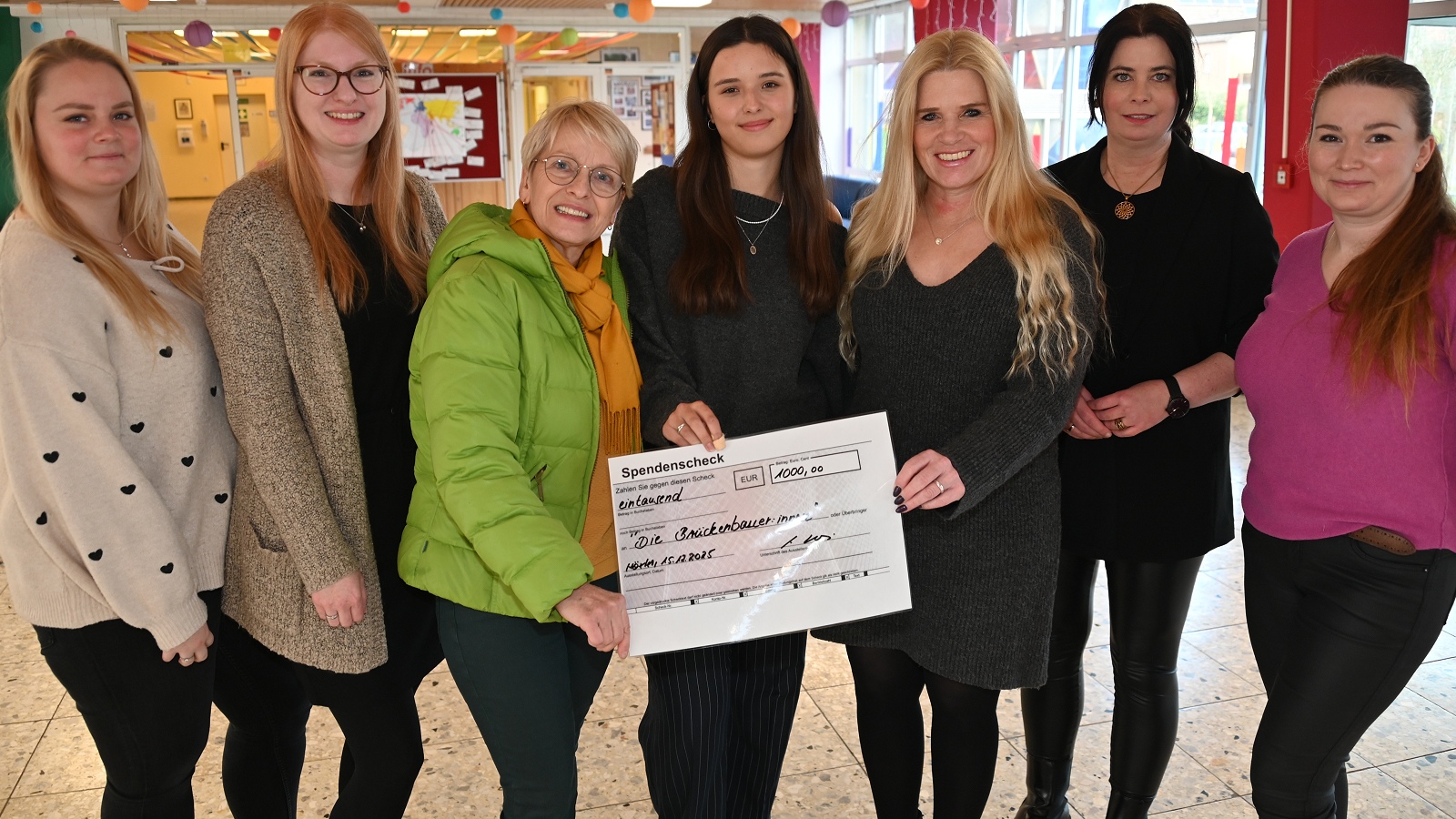 Höxter (TKu). Die Hoffmann-von-Fallersleben-Realschule Höxter wurde zum „Brückenbauer“: Gemeint ist eine Spendenübergabe aus dem Erlös des Tages der offenen Tür für das Trauernetzwerk „Die Brückenbauer:innen“. Die Realschule hat vor einigen Wochen nicht nur Einblicke in das vielfältige Schulleben gegeben, sondern auch Geld für den guten Zweck gesammelt. Am 28. November 2025 öffnete die Realschule ihre Türen für zahlreiche Besucherinnen und Besucher, die die Gelegenheit nutzten, die Schule, ihre Angebote und ihre besondere Gemeinschaft kennenzulernen. Der Tag stand ganz im Zeichen der Begegnung, des Austauschs und der Verantwortung füreinander. Mit großem Engagement präsentierten Schülerinnen und Schüler gemeinsam mit Lehrkräften und Mitarbeitenden die unterschiedlichen schulischen Aktivitäten. Mitmachaktionen luden zum Ausprobieren ein, während Schulführungen vor allem bei Eltern und Grundschulkindern auf reges Interesse stießen. „Besonders innovativ war die digitale Rallye namens Biparcours, die es ermöglichte, das Schulgebäude spielerisch und eigenständig zu erkunden. Auch das Rahmenprogramm trug zur besonderen Atmosphäre bei. Die Jugendfeuerwehr Höxter begeisterte mit einer eindrucksvollen Show auf dem Schulhof, die Schulband sorgte für musikalische Highlights, und im Schulcafé wurden frisch gebackene Waffeln aus der Schulküche angeboten. Ergänzt wurde das Angebot durch einen Kreativmarkt, der zum Stöbern und Verweilen einlud“, sagt Schulleiterin Sylvia Stebbing.