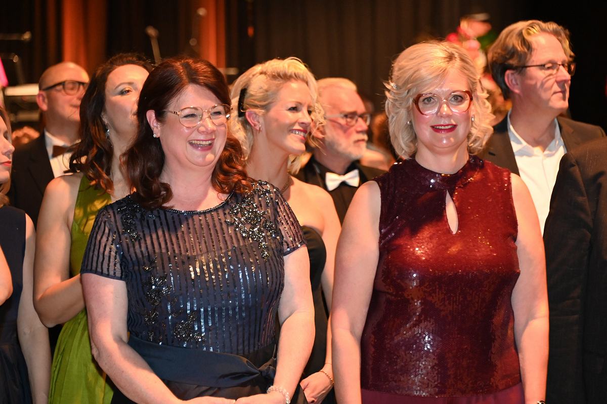 Beverungen (TKu). Ausverkaufte Stadthalle: Flexibilität gehörte in diesem Jahr ebenso zum Kulturball, wie die festliche Garderobe und die Tanzmusik der beliebten Amorados Showband. Beim 46. Kulturball in der Stadthalle Beverungen am vergangenen Samstagabend machte das Winterwetter eine kurzfristige Programmänderung erforderlich. Der geplante zweite Hauptact aus Bremen konnte wetterbedingt nicht anreisen, wie Schatzmeister Markus Hollenstein von der Kulturgemeinschaft Beverungen bei der Balleröffnung bekanntgeben musste. Für einen gelungenen Ersatz sorgten jedoch mehrere Line-Dancer und Tänzer, die als Besuchergruppe für spontane Darbietungen sorgten. Der Kulturball war erneut das Highlight der lokalen Kultursaison: Festliche Atmosphäre, elegante Gäste, stilvolle Dekoration und ein abwechslungsreiches Programm. Das engagierte Kulturballteam um Imke Groppe-Wille, Heike Hake, Beate Sagel, Alexandra Rüther, Eva Veigel und Anke Wellmann hatte monatelang geplant und präsentierte einen rundum gelungenen Abend. Insbesondere die Dekoration war im Wesentlichen bunter als die Jahre zuvor. Für ihre großartige Leistung und eine gelungene Dekoration dankte Markus Hollenstein von der Kulturgemeinschaft seiner Dekorations-Crew ganz herzlich auf der Bühne.