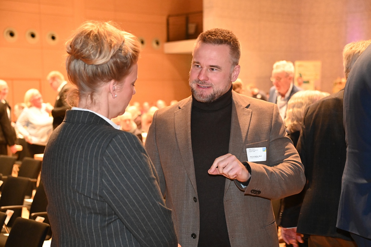 Auch Wissenschaftsministerin Brandes zeigte sich beeindruckt von der Unterstützung für den Hochschulstandort Höxter. Ihr Statement hätte nicht klarer sein können: „Wir brauchen auch die Studierenden aus dem ländlichen Raum mit ihren Erfahrungen, die sie hier gesammelt haben. Der Hochschulstandort steht im Studiengesetz, und daran hat sich bis heute nichts geändert. Ich bin sehr zuversichtlich, dass wir den Standort in Höxter behalten werden.“ Von einer ganz persönlichen Begegnung mit Prof. Dr. Klaus Töpfer berichtete sie ebenfalls. Dieser habe sich stets über alle Grenzen hinweg für den Umweltgedanken und die Nachhaltigkeit eingesetzt und sei ein sehr sympathischer Mensch gewesen. Bürgermeister Daniel Hartmann betonte die historische und symbolische Bedeutung der Residenz-Stadthalle, die 2004 von Klaus Töpfer eröffnet wurde: „Dass nun ausgerechnet hier das erste Klaus-Töpfer-Umweltsymposium stattfindet, ist mehr als ein schöner Zufall. Es ist ein deutliches Zeichen für die Bedeutung seines Lebenswerks. Klaus Töpfer hat gezeigt, dass Umwelt- und Klimaschutz keine Randthemen sind, sondern zentrale Zukunftsfragen für Städte, Regionen und die gesamte Gesellschaft. Nachhaltigkeit ist kein Einzelprojekt, sondern ein langfristiger Lernprozess, getragen von vielen Akteuren.“ Lutz Töpfer, Sohn des Namensgebers des Symposiums, begrüßte die Anwesenden ebenfalls und stellte die Verbindung seines Vaters zu dem Symposium heraus: Die Veranstaltung sei voll und ganz im Sinne seines verstorbenen Vaters. Er sei bekannt dafür gewesen, dass er sich für Nachhaltigkeit und Umweltschutz stark gemacht habe und wäre gerne selbst dabei gewesen, so Töpfer. Das Symposium bot ein abwechslungsreiches Programm aus Vorträgen, Diskussionen und Praxisbeispielen. Es verdeutlichte die Notwendigkeit des Dialogs zwischen Forschung, Politik und Praxis, um die Umwelt von morgen nachhaltig zu gestalten. Die hohe Beteiligung und die thematische Tiefe unterstrichen die Bedeutung des Klaus-Töpfer-Umweltsymposiums als überregionale Plattform für Umwelt- und Nachhaltigkeitsthemen. Der Hochschulstandort spiele dabei eine zentrale Rolle für die Ausbildung zukünftiger Umweltfachkräfte.