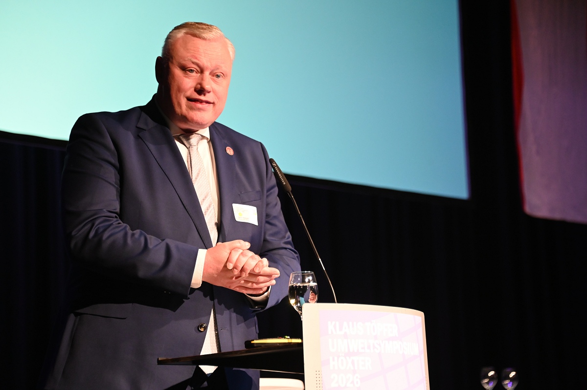 Höxter (TKu). Mit großer Resonanz ist am 9. Februar 2026 das erste Klaus-Töpfer-Umweltsymposium in der Residenz-Stadthalle in Höxter gestartet. Mehr als 250 Teilnehmende aus Wissenschaft, Wirtschaft, Verwaltung und Politik sowie zahlreiche interessierte Bürgerinnen und Bürger nutzten die zweitägige Veranstaltung, um sich intensiv über aktuelle und zukünftige Herausforderungen im Umwelt- und Nachhaltigkeitsbereich auszutauschen. Die Eröffnung des Symposiums übernahm die nordrhein-westfälische Wissenschaftsministerin Ina Brandes, die als Schirmherrin die Bedeutung von Wissenschaft und Forschung für nachhaltige Lösungsansätze unterstrich. Zuvor hatten die Kreisdirektorin des Kreises Höxter, Manuela Kupsch, und der Bürgermeister der Stadt Höxter, Daniel Hartmann, die Gäste willkommen geheißen. Zu den Anwesenden zählten neben Landes- und Europapolitikern auch die Regierungspräsidentin des Regierungsbezirks Detmold, Anna Katharina Bölling, sowie Vertreterinnen und Vertreter weiterer Hochschulen aus Nordrhein-Westfalen und darüber hinaus.