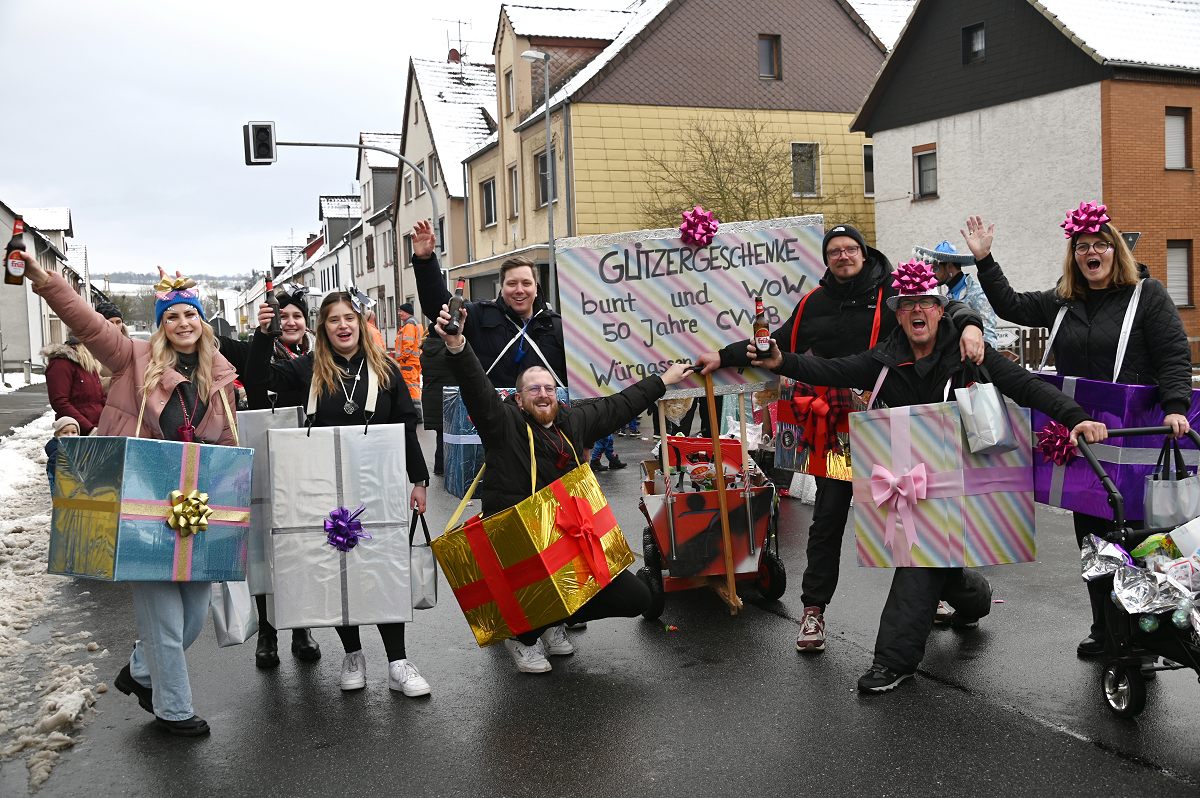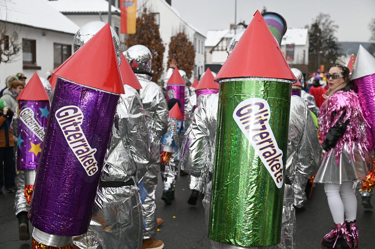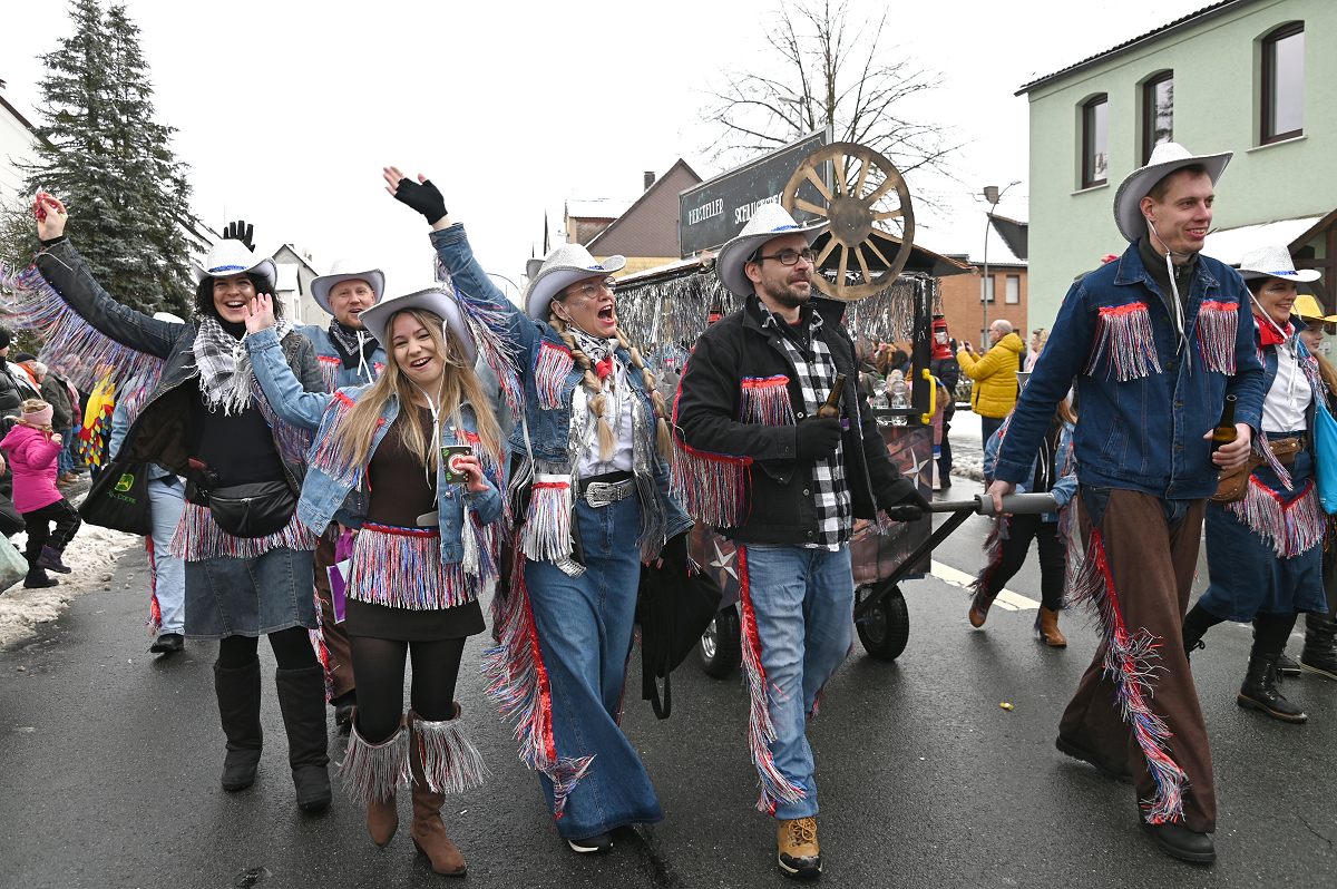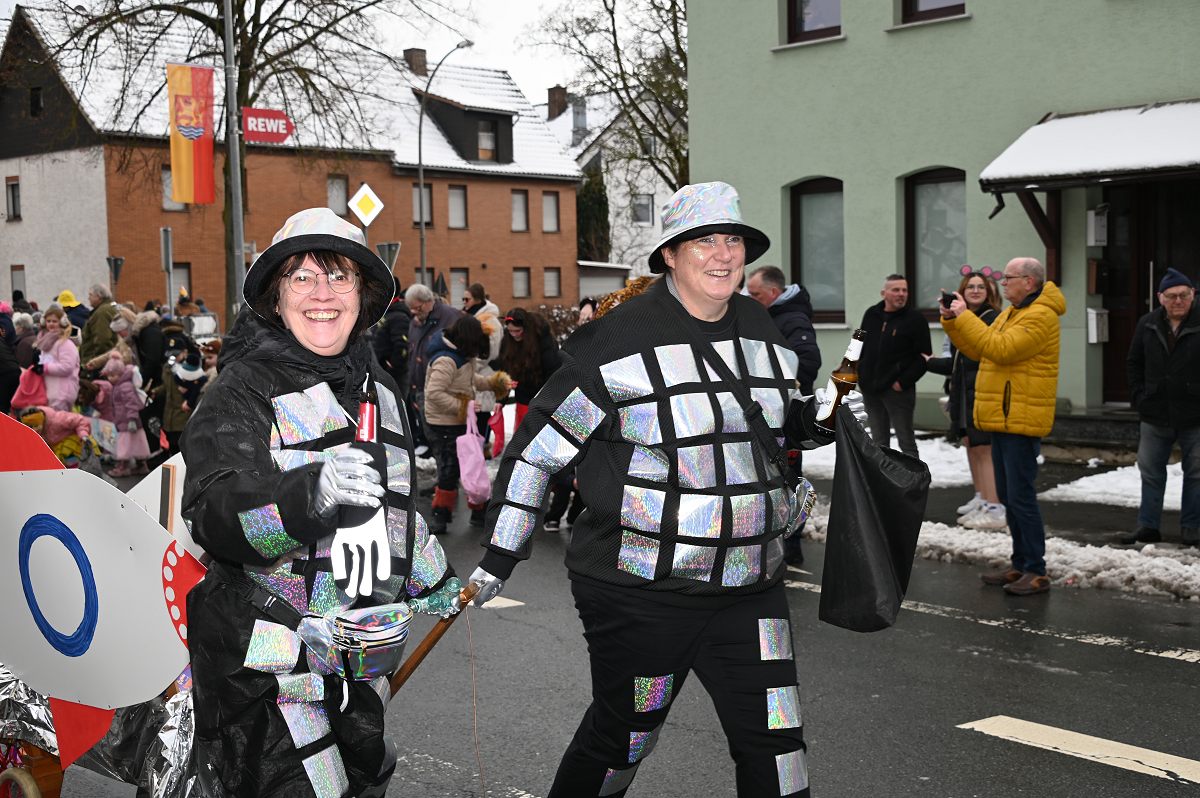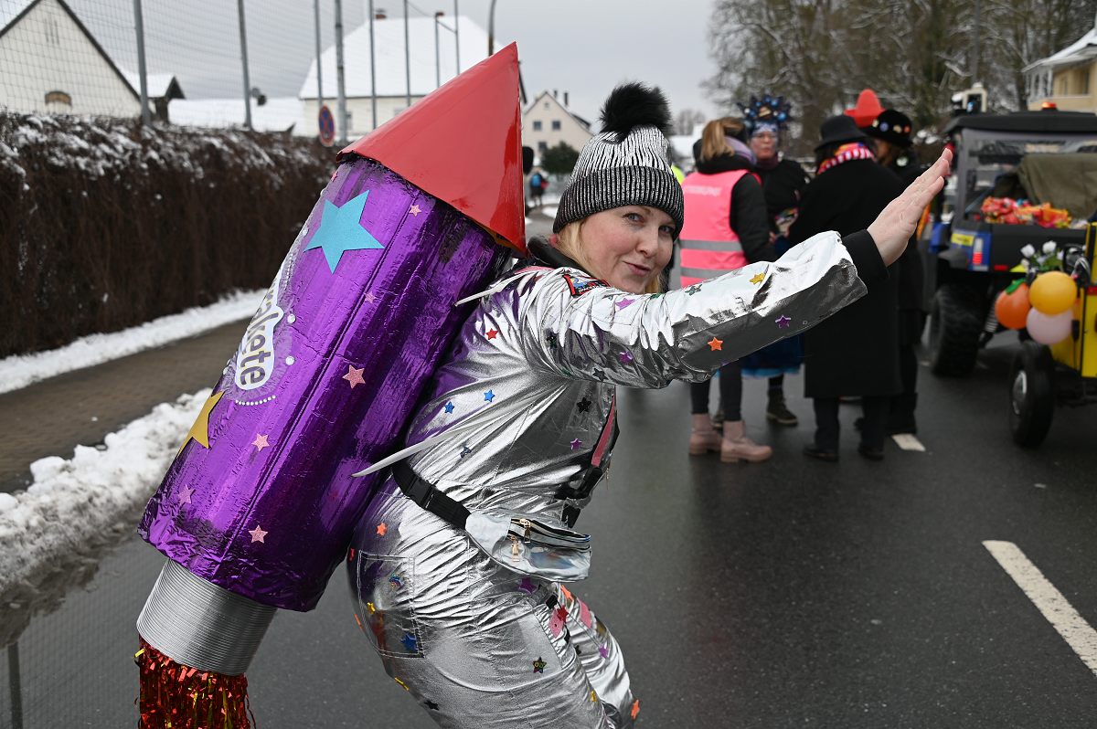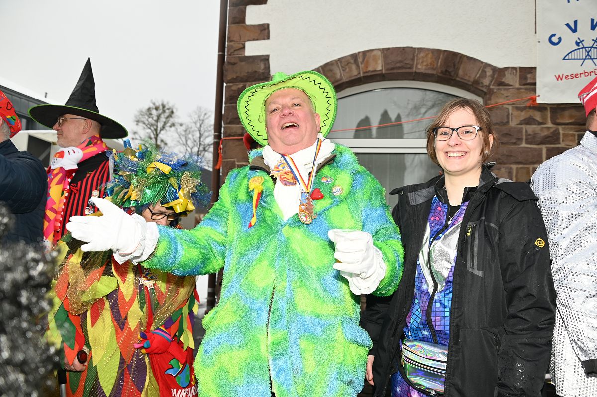 Beverungen/Lauenförde (TKu). Ganz im Zeichen des Mottos „Der CVWB glitzert grenzenlos – im Dreiländereck ist richtig was los!“ verwandelten sich Lauenförde und Beverungen am Rosenmontag in ein funkelndes Karnevalsmeer. Der große Jubiläumsumzug des Carnevalsverein Weserbrücke e.V. (CVWB) markierte den Höhepunkt der Session und zugleich das 50-jährige Bestehen des Vereins. Hunderte Meter lang zog sich der farbenprächtige Lindwurm von der Würgasser Straße durch Lauenförde, weiter über die Weserbrücke bis zur Stadthalle Beverungen. Angeführt vom Prinzenwagen des CVWB mit Prinz Florian (Kastens), „der balearisch Regierende“, und Prinzessin Carena (Zarnitz), „die ewig Marschierende", präsentierten sich die Umzugsteilnehmenden fantasievoll und detailverliebt: Raketen, glitzernde Phantasievögel, Schneekristalle, Cowboys, Hexen, Discogruppen und sogar festlich geschmückte Weihnachtsbäume sorgten für staunende Gesichter.