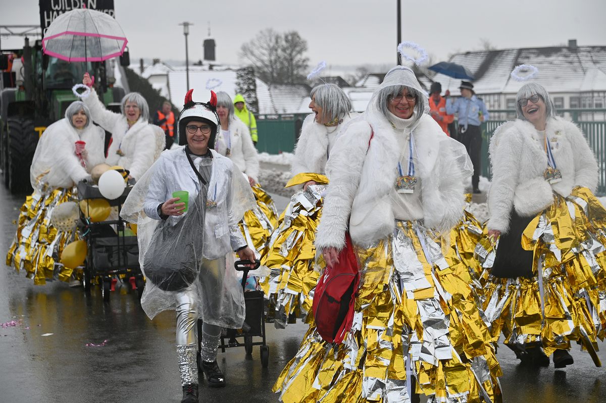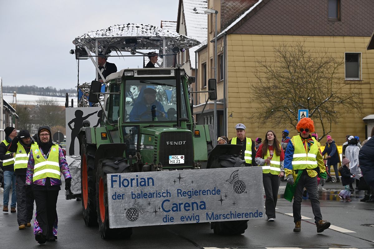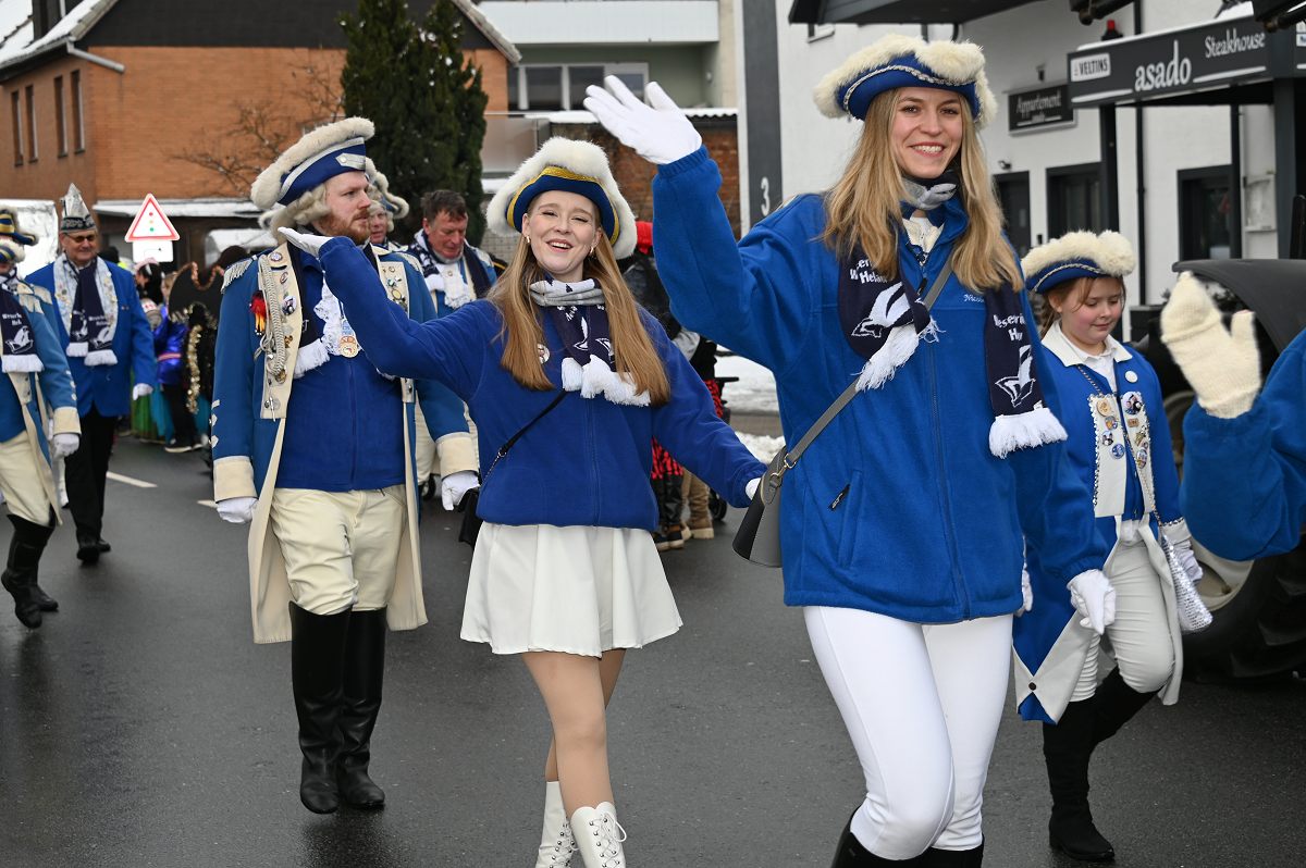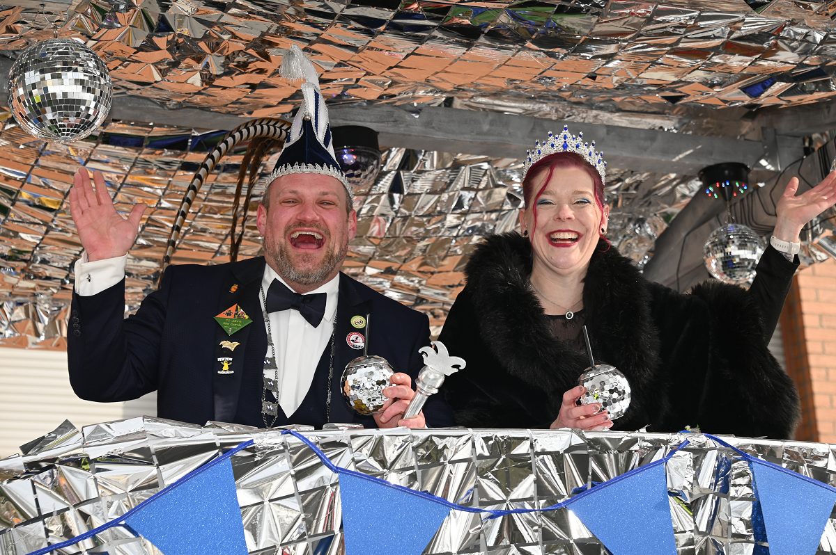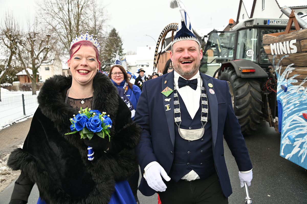 Tausende Jecken säumten die Straßenränder, ausgerüstet mit Beuteln und guter Laune, stets in der Hoffnung auf Kamelle, Konfetti und kleine Überraschungen. Für eine besondere, fast schon märchenhafte Note sorgte das Wetter: Mitten im Februar fielen zwischendurch tatsächlich ein paar Schneeflocken. Die Prinzenpaare hatten mit dem Rosenmontagsumzug auch ihren letzten großen Auftritt. Prinz Florian (Kastens), „der balearisch Regierende“, und Prinzessin Carena (Zarnitz), „die ewig Marschierende“, verabschiedeten sich gemeinsam mit dem Kinderprinzenpaar Till (Marx), „der fröhlich Kreative“, und Prinzessin Johanna (Kleinschmidt), „die glitzernd Aktive“, vom närrischen Volk. Insgesamt nahmen über 50 Wagen, Fußgruppen und Musikzüge teil: von Spielmannszügen aus der Region über Garden, Elferräte und Fantasiegruppen bis hin zu Sicherheitswagen und dem Deutsches Rotes Kreuz, das für einen sicheren Ablauf sorgte. Nach dem Umzug wurde in und an der Stadthalle Beverungen ausgelassen weitergefeiert.