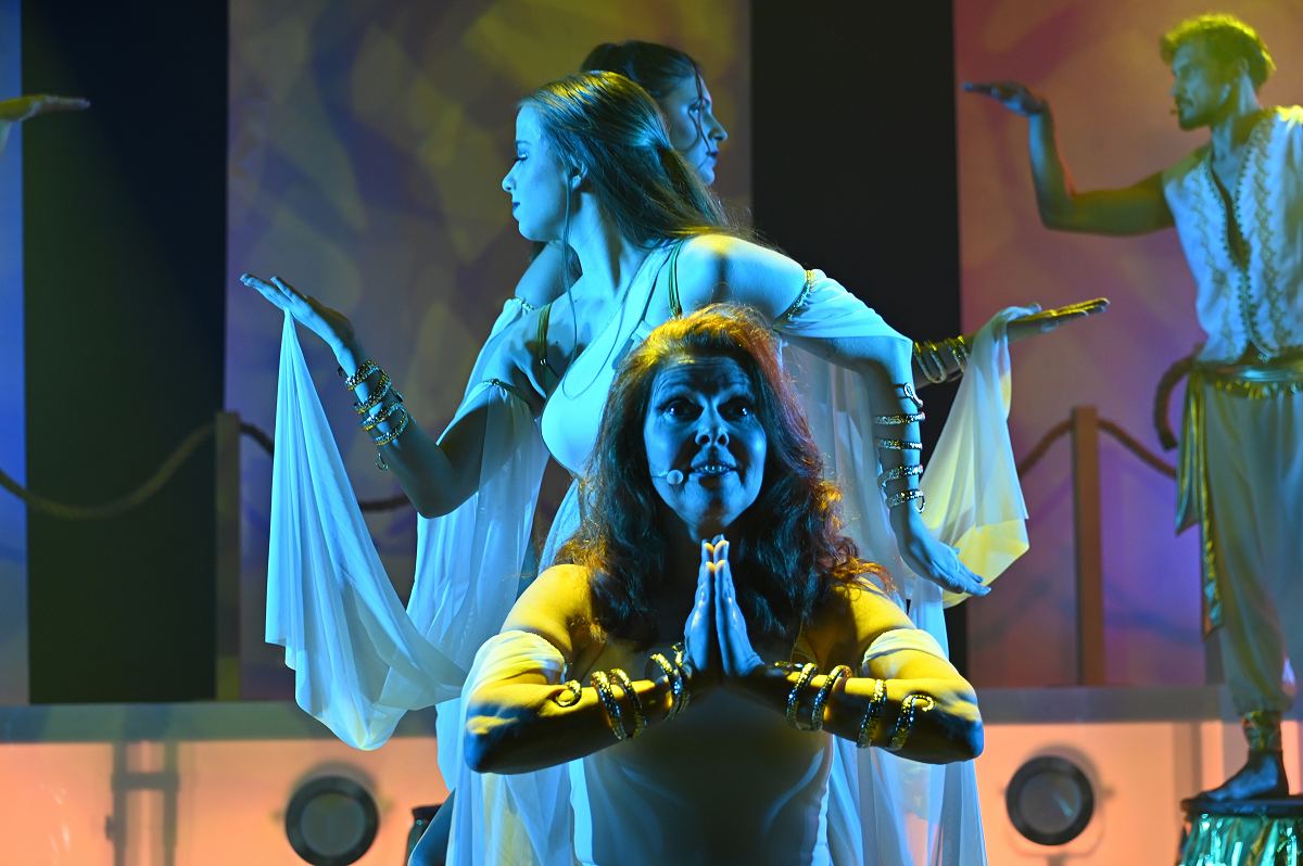 Auf der Bühne überzeugte ein großes Ensemble aus erfahrenen Darstellerinnen und Darstellern sowie neuen Gesichtern. Zu sehen waren Birgit Auel, Thomas Golüke, Sandra Hake, Sebastian Hegener, Pia Hermanns, Martin Klinkemeier, Sergej Rau, Björn Schwarzer, Maria Sievers und Carina Stickel. Frischen Wind brachten zudem Mika Germa, Xenia Heidebrecht, Alina Schmieder und Ida Sonnemann, die gemeinsam mit dem Ensemble glänzten. In zweieinhalb Stunden geht es in der Stadthalle einmal rund um die Welt, möglich gemacht durch das Kreuzfahrtschiff des Schlosstheaters. Nach dem Einchecken führt Kapitän Björn Tegeler das Publikum von Italien über Ägypten und Afrika bis nach Südamerika und New York, bevor es wieder zurück in heimische Gewässer geht. Im Mittelpunkt stehen dabei nicht nur die Reiseziele, sondern auch das Leben an Bord: Szenen in der Barbara Bar, sportliche Einlagen im Fitnessstudio („Bauch, Beine, Po“), Zauberkunst und humorvolle Begegnungen mit skurrilen Bojen und Leuchttürmen sorgen immer wieder für Schmunzeln und Lacher.