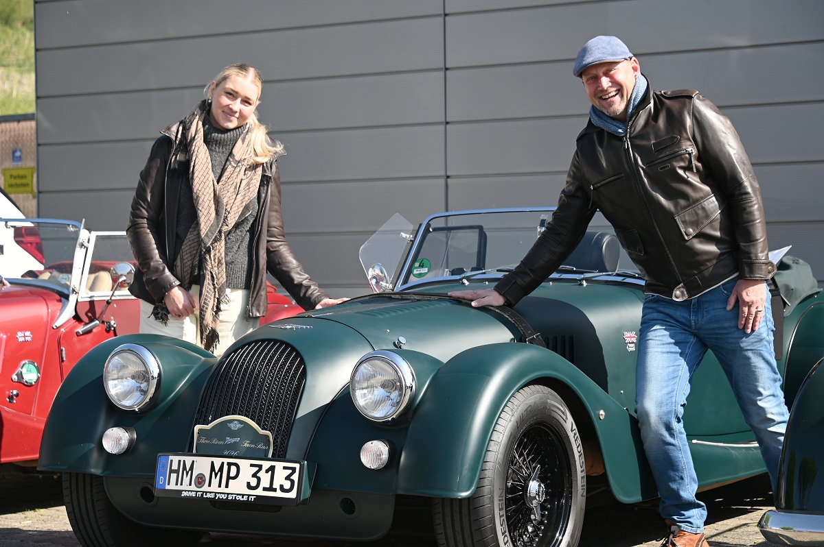 Ein deutlich jüngeres Modell brachte Marco Pietruszak mit: Sein Morgan Roadster „Brooklands Edition“ aus dem Jahr 2014 gehört zu einer weltweit auf 50 Exemplare limitierten Serie. „Jedes Fahrzeug ist nummeriert und entsprechend bei Sammlern gefragt“, erklärt Pietruszak. Sein Wagen hebt sich durch eine individuell konfigurierte matte Lackierung hervor und gilt damit als Einzelstück. Für ihn verbindet das Fahrzeug klassische Optik mit moderner Zuverlässigkeit: „Ich wollte immer einen Oldtimer – aber ohne die typischen Nachteile älterer Autos, weil mir dafür Zeit und Schrauberkenntnisse fehlen.“