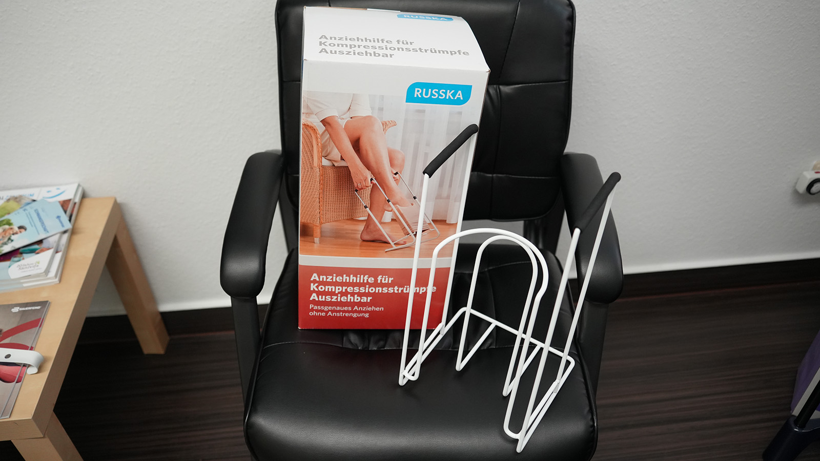 Eine weitere Möglichkeit bieten Gestelle. Hier wird der Strumpf über einen Rahmen gespannt, in den anschließend hineingestiegen wird. „Mit den Griffen kann der Strumpf dann am Bein nach oben gezogen werden“, so Parschau. Unterschiedliche Ausführungen – etwa mit verstellbaren oder ausziehbaren Griffen – ermöglichen eine Anpassung an individuelle Bedürfnisse.